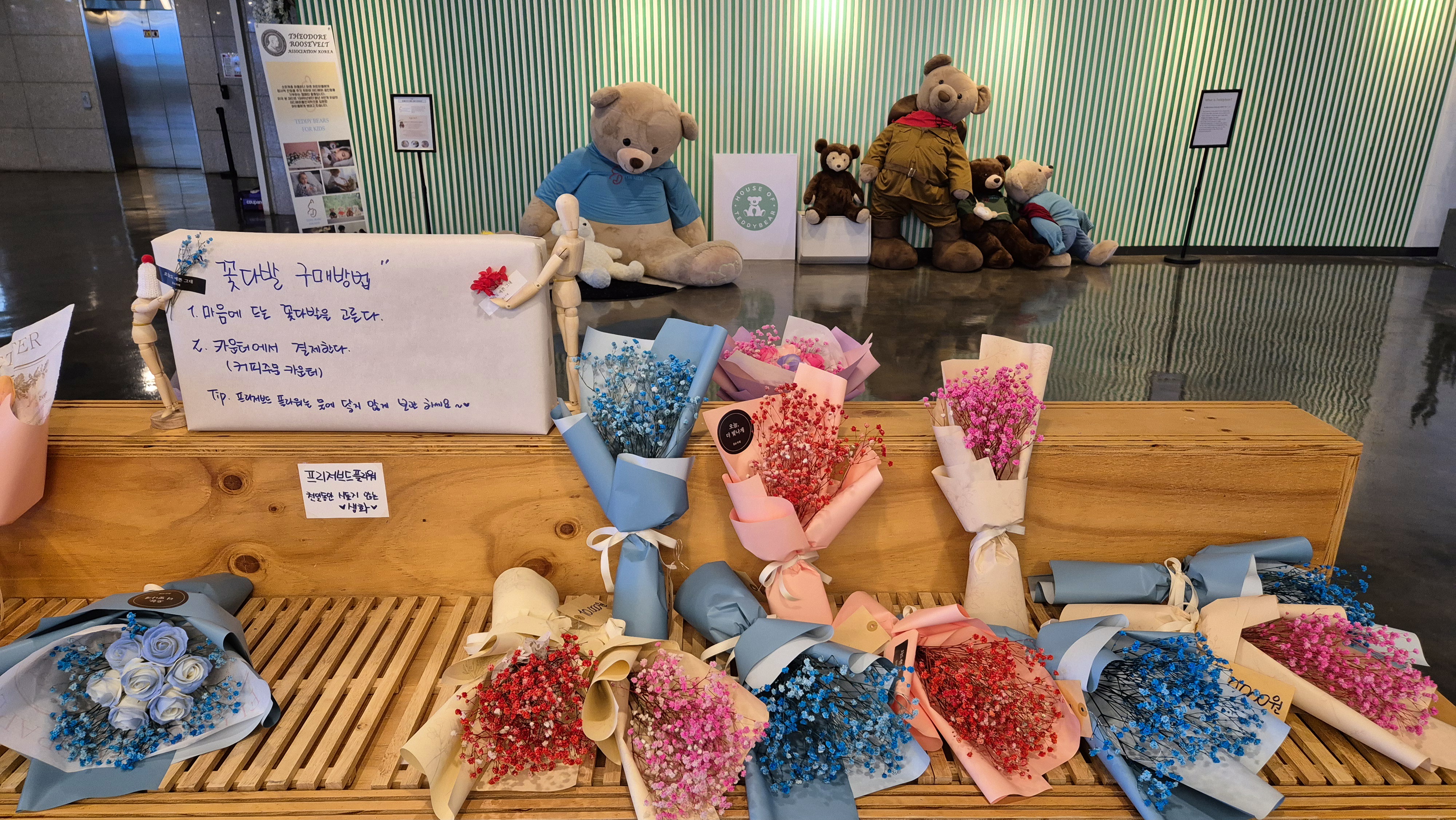 카페 입구 쪽에는 판매 중인 꽃다발도 진열되어 있다.