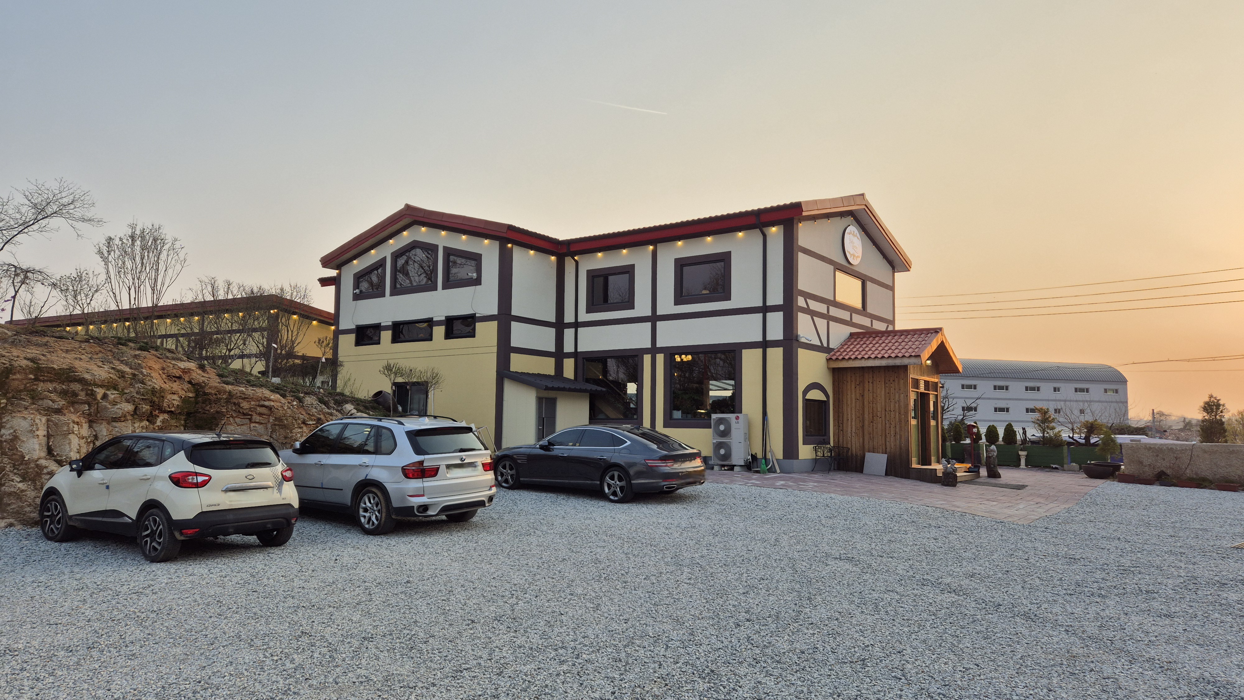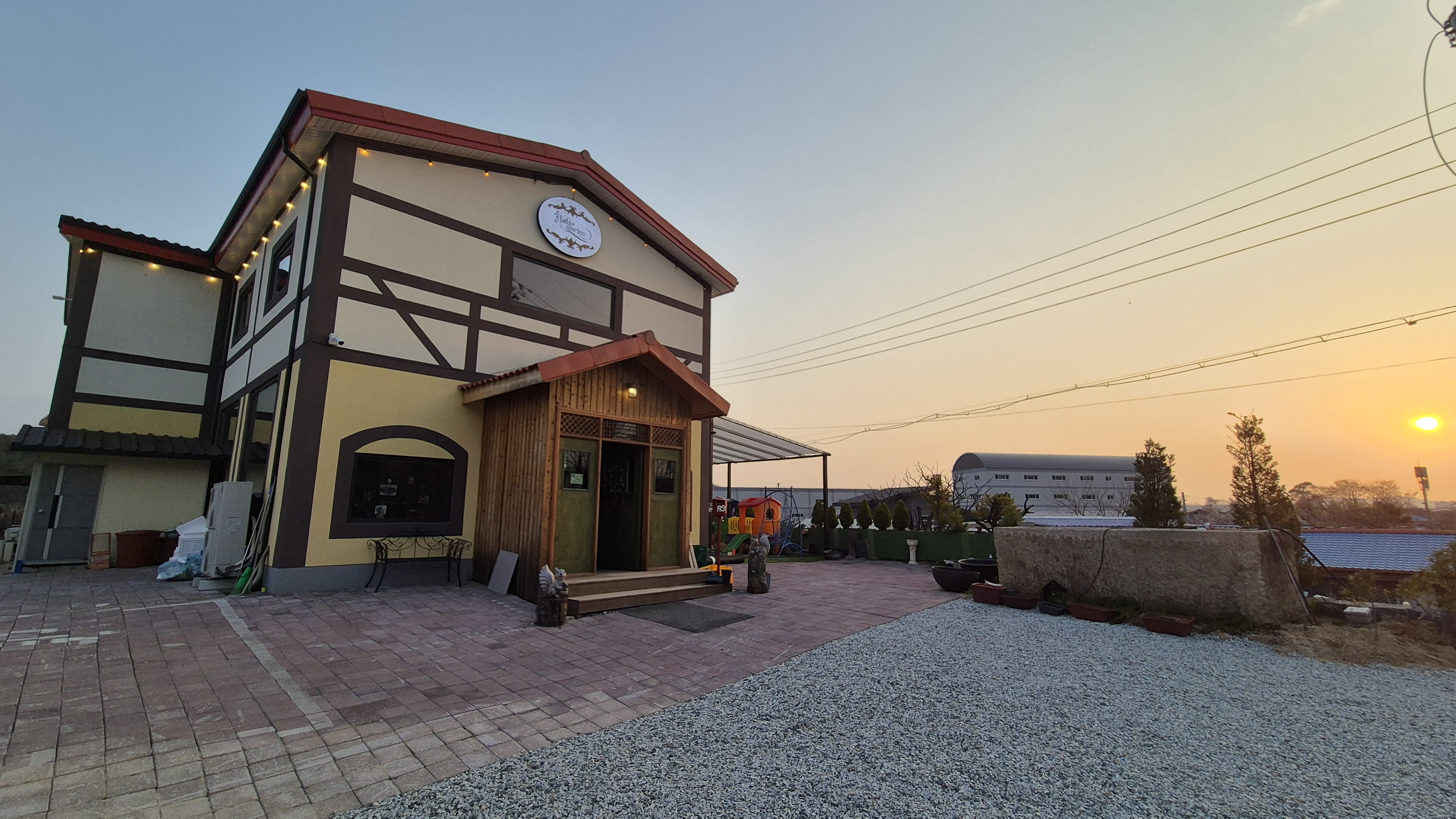 홀츠가르텐은 여주의 남한강 동쪽에 있다. 이런 곳에 카페가 있을까 싶었는데 가까이 다가가면 넓은 전용 주차장 뒤로 카페가 보인다.