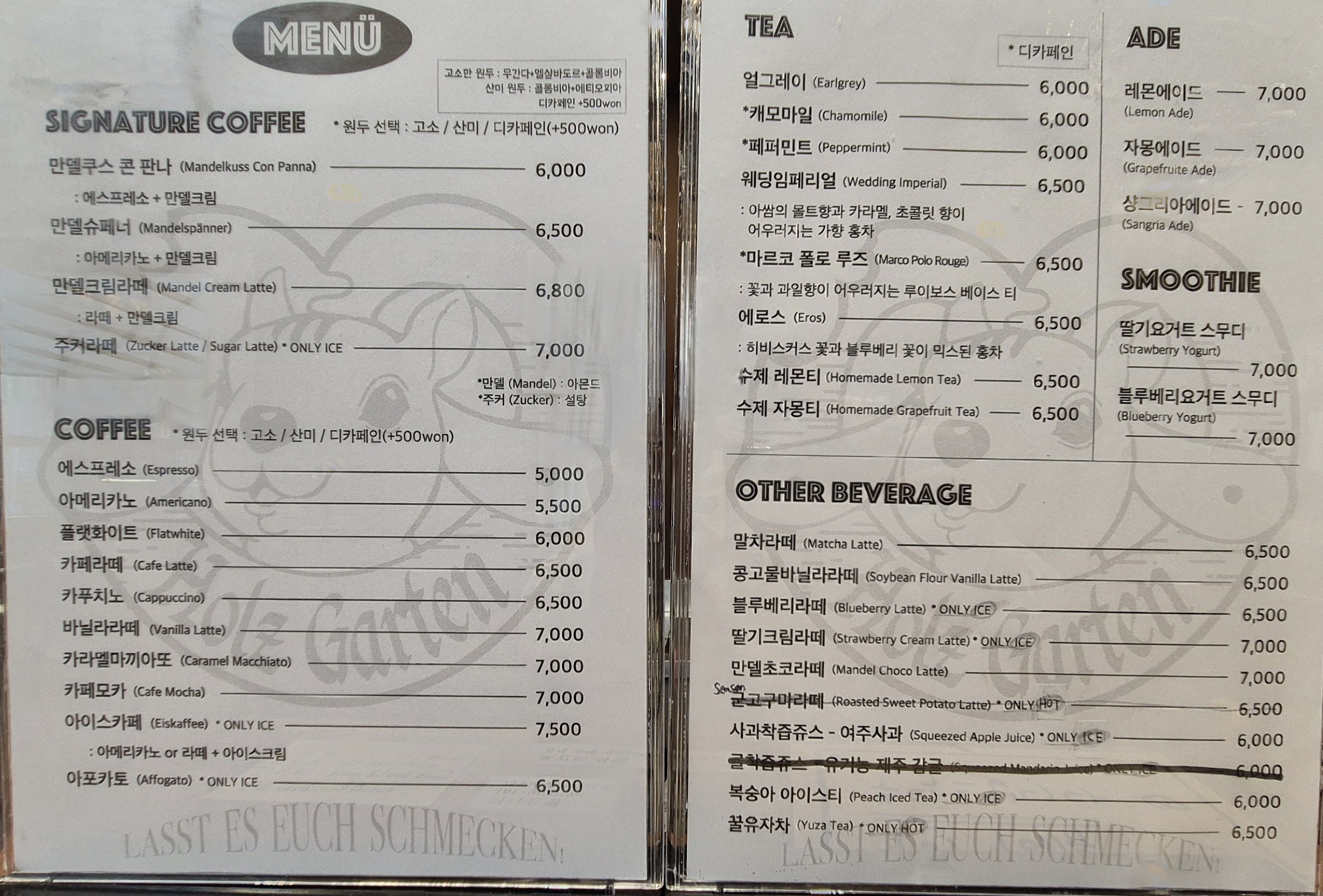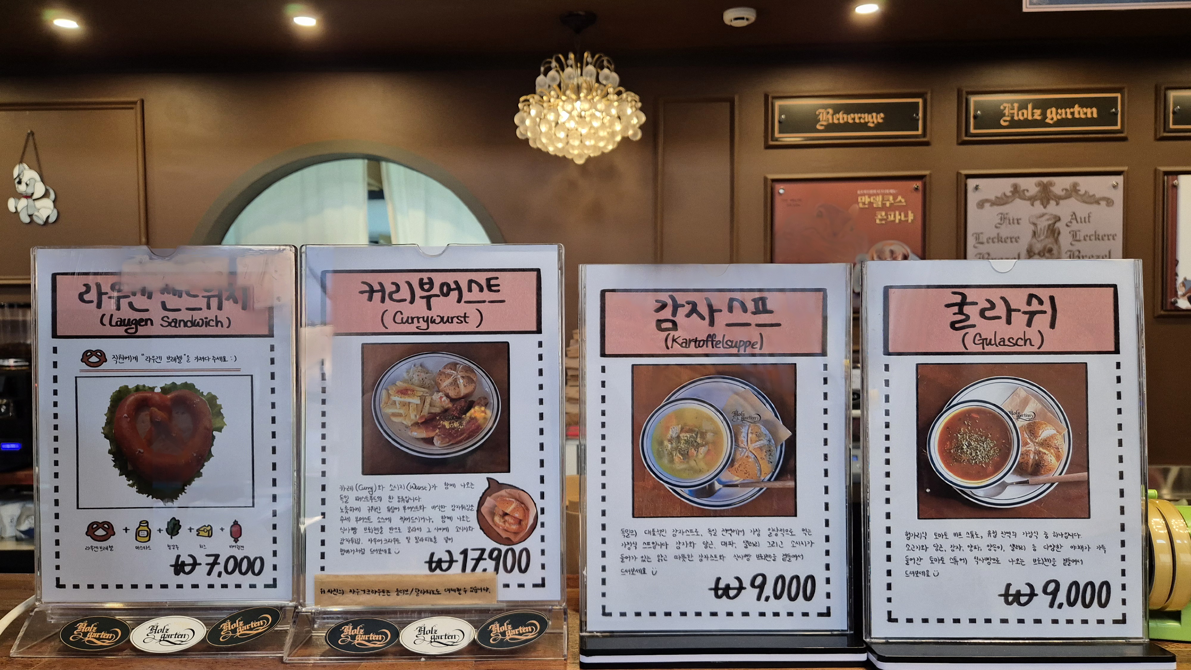 음료의 가격은 프랜차이즈 카페와 비슷하고 브레첼과 간단한 음식도 먹을 수 있다.