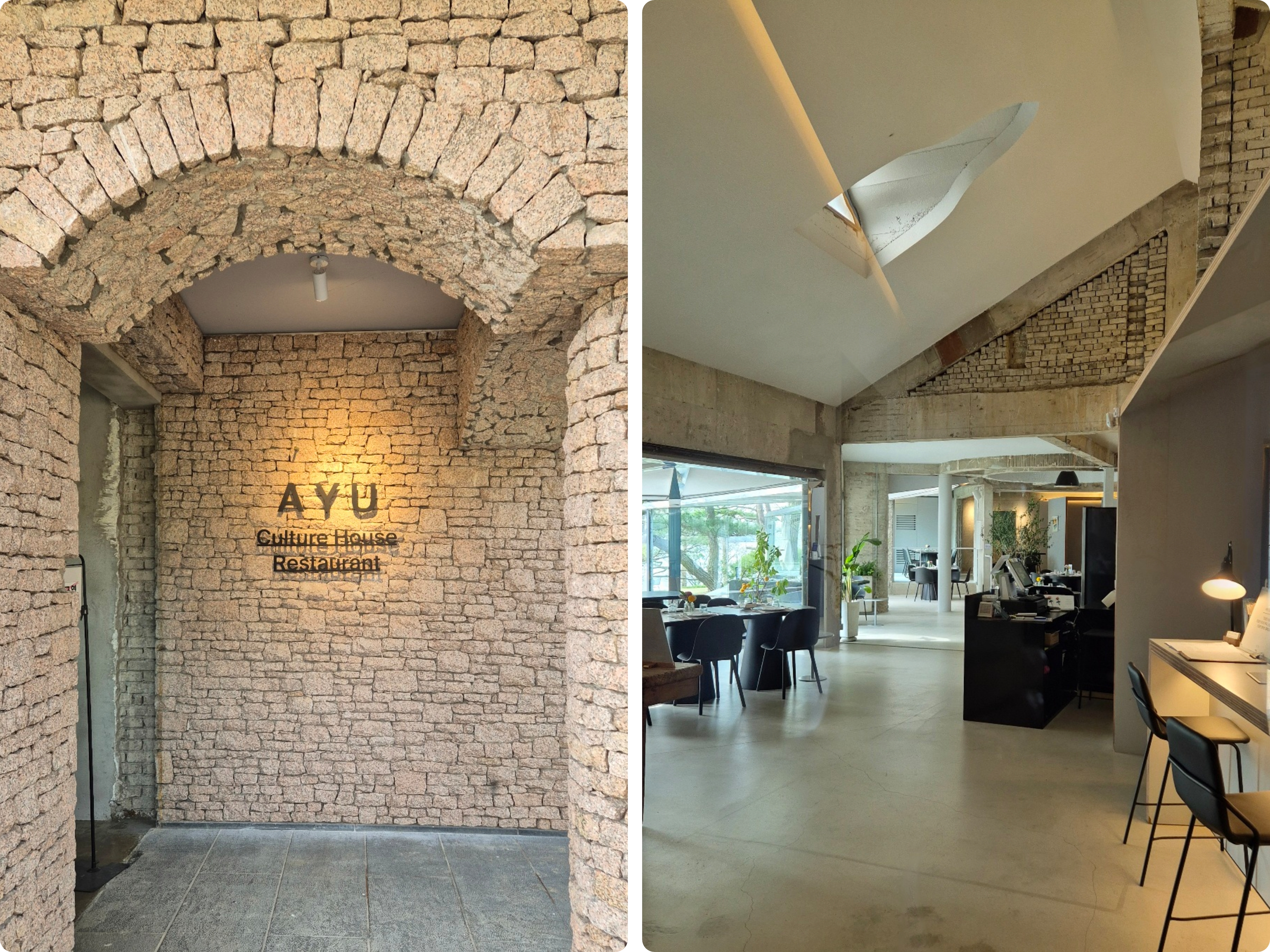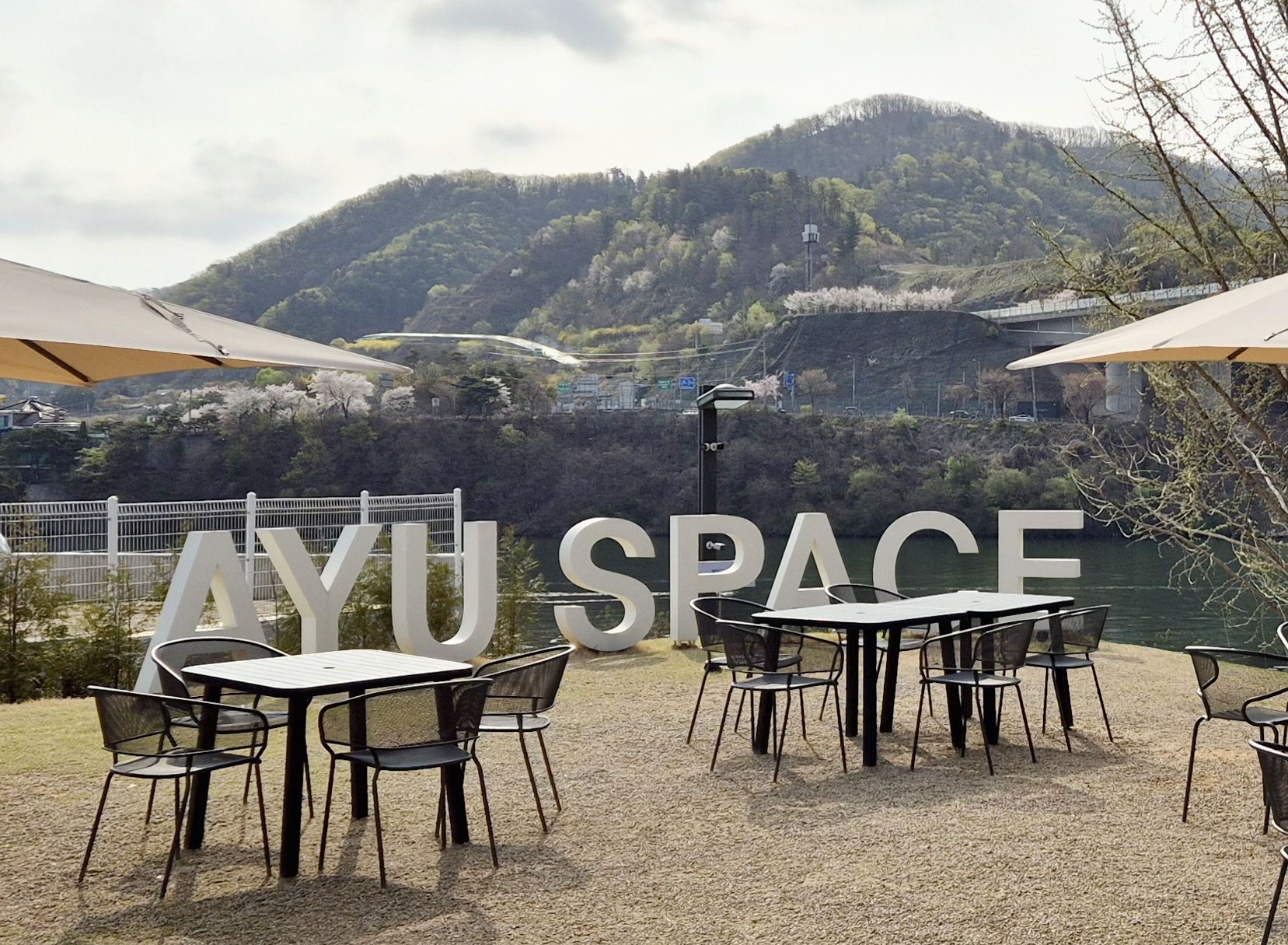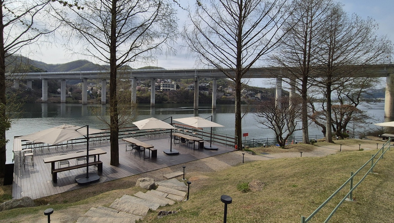 아유스페이스는 북한강가의 넓은 대지에 독특한 구조의 건물들로 이루어진 카페이다.