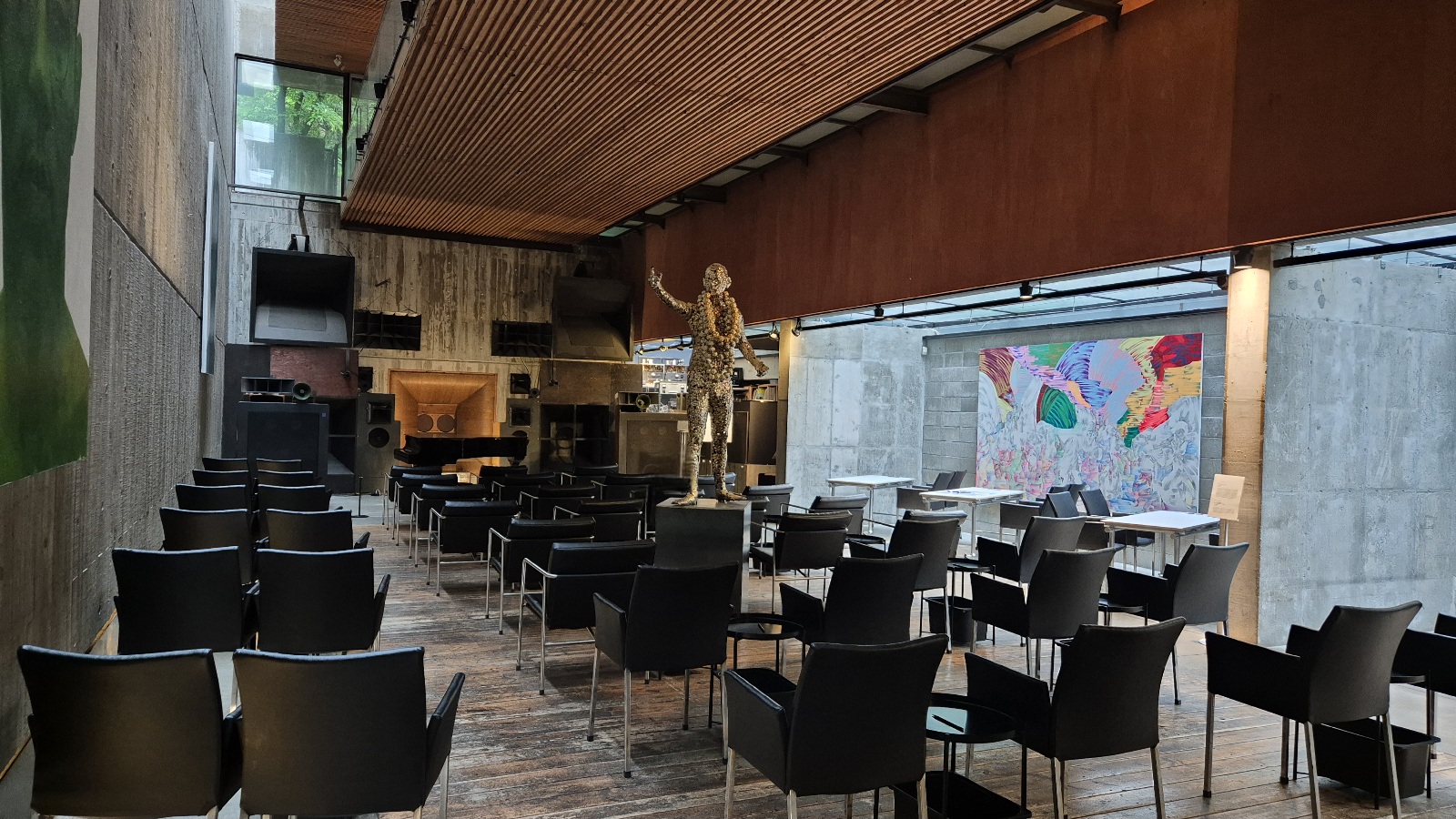 가장 안쪽 벽면 가득 큰 스피커가 설치되어 있다. 방문한 날은 일부 스피커의 음악 소리만 들려서 아쉬웠다.
