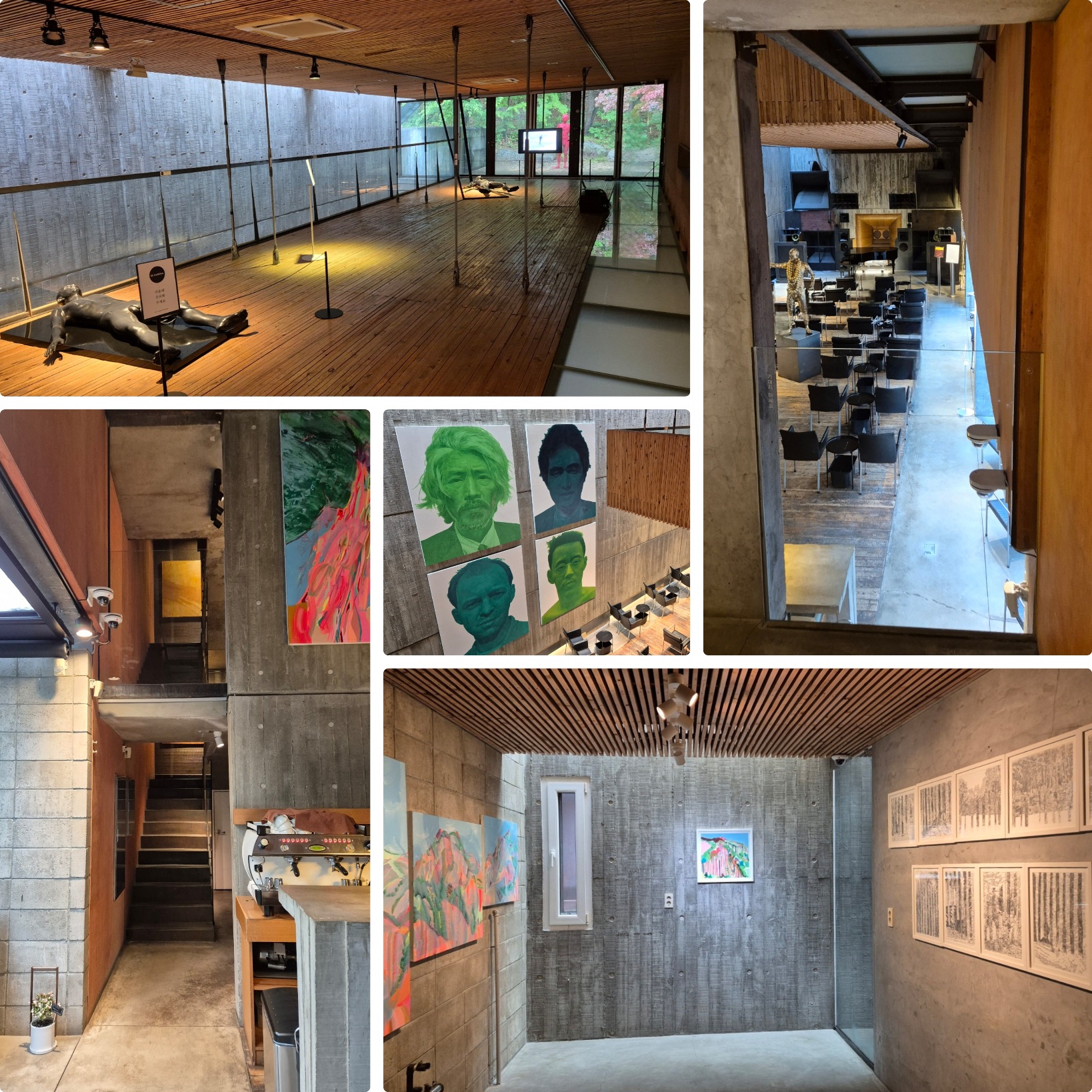 위에서 1층의 카페공간 전체가 잘 보이며 벽면의 초상화 작품도 감상하기 좋다.