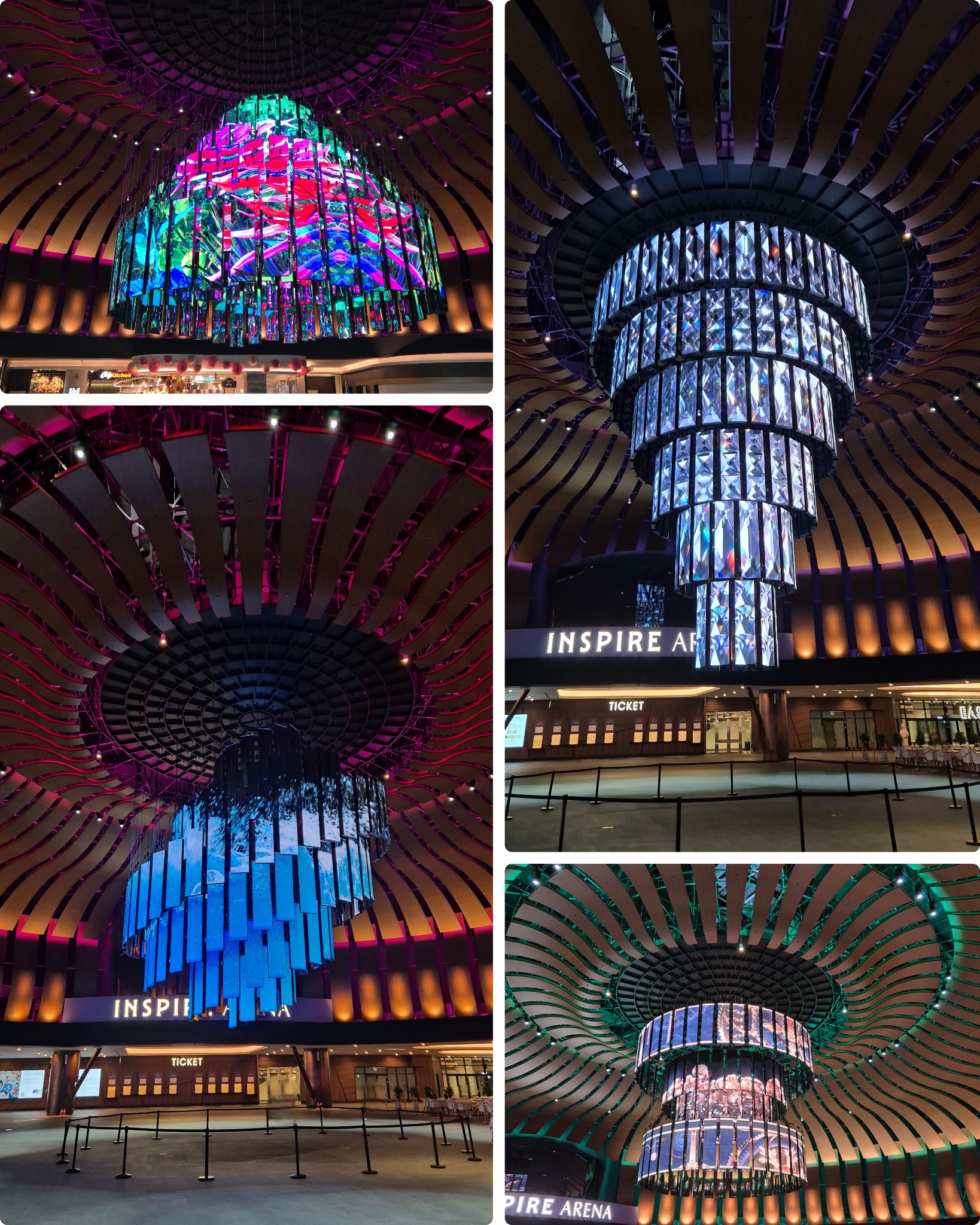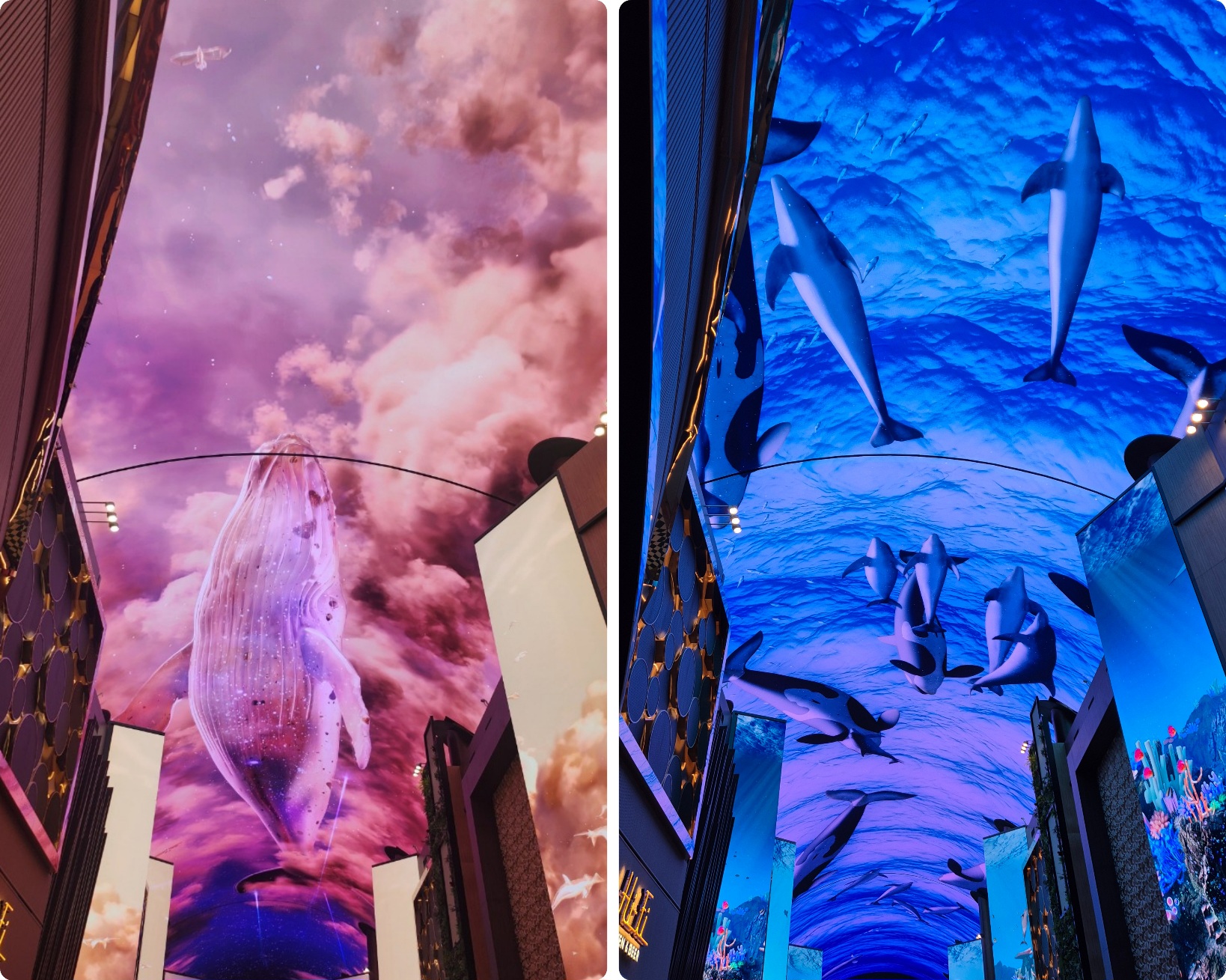 인스파이어 리조트에서는 화려한 키네틱 샹들리에 쇼인 로툰다와 LED 천장인 오로라의 환상적인 고래 영상을 볼 수 있다.