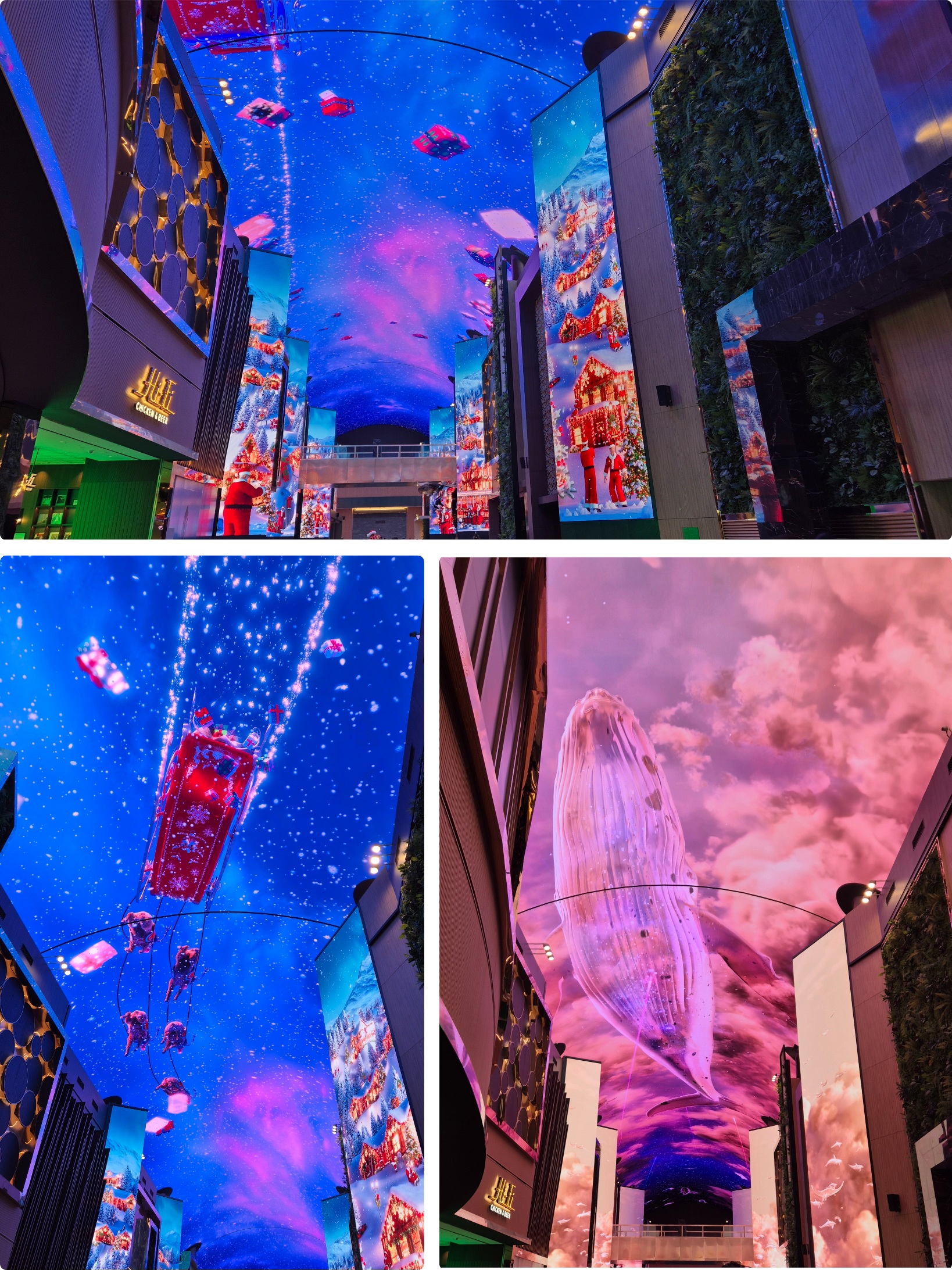 천장의 오로라 쇼도 크리스마스 테마가 추가되었다. 고래도 여전히 볼 수 있다. 매시간 정각과 30분에 교대로 운영된다.