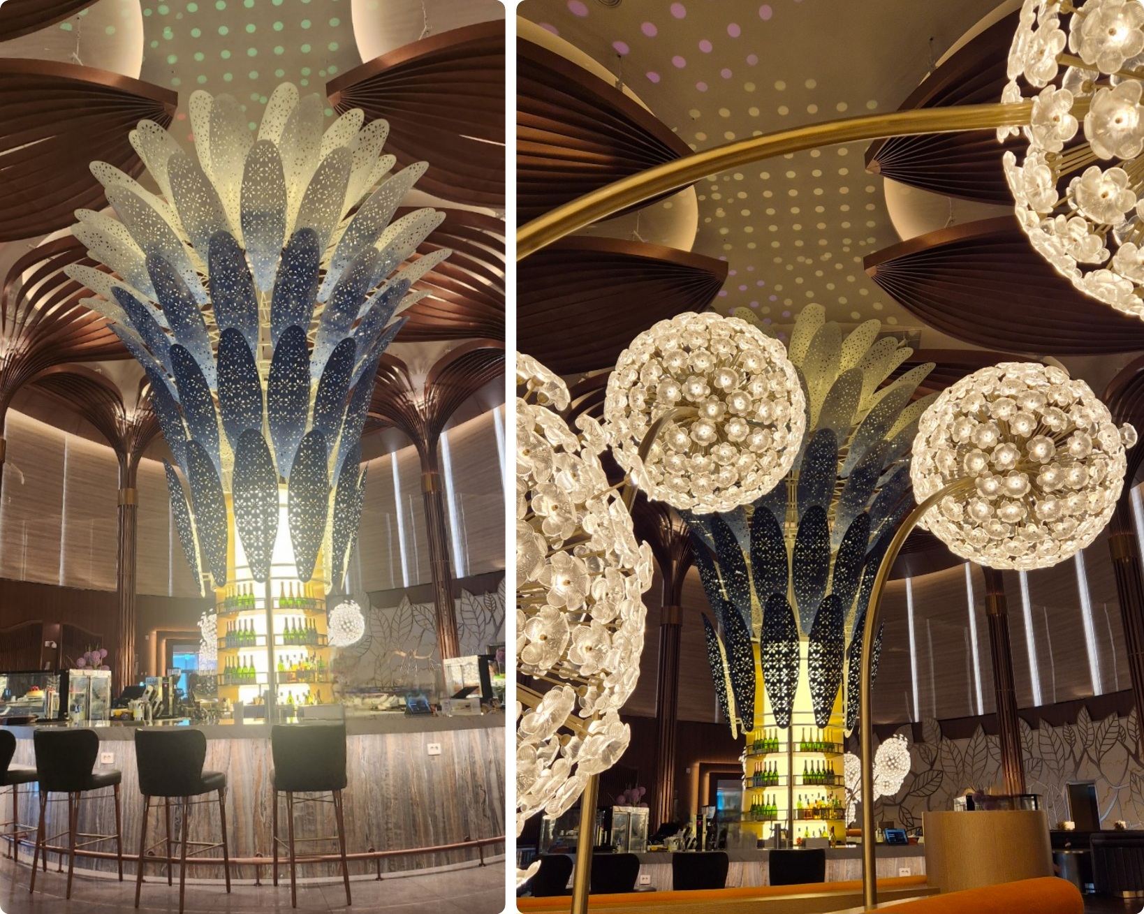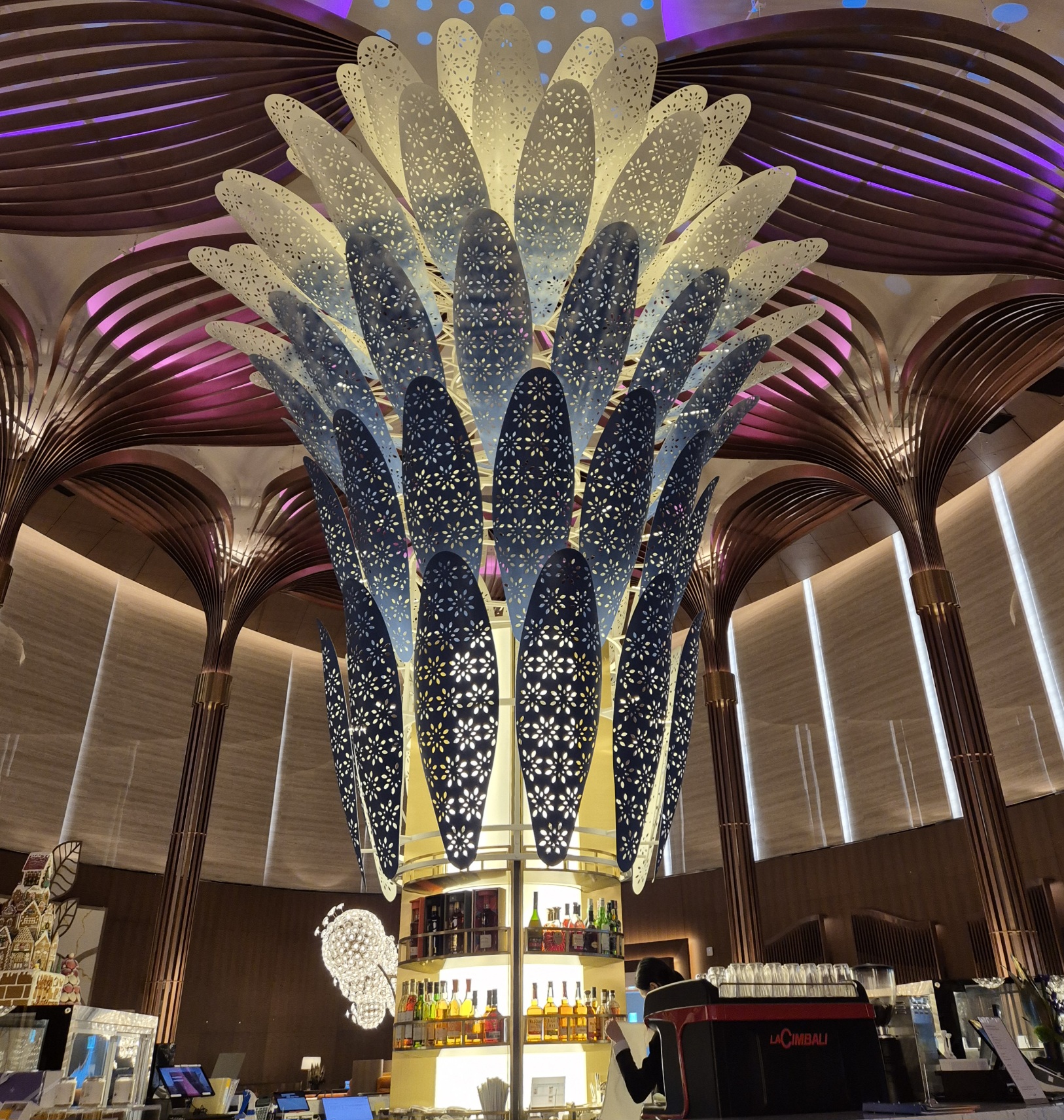 가운데 나무모양의 거대한 기둥이 있으며 라운지 둘레는 그보다 작은 나무모양의 기둥이 천장을 받치고 있다.