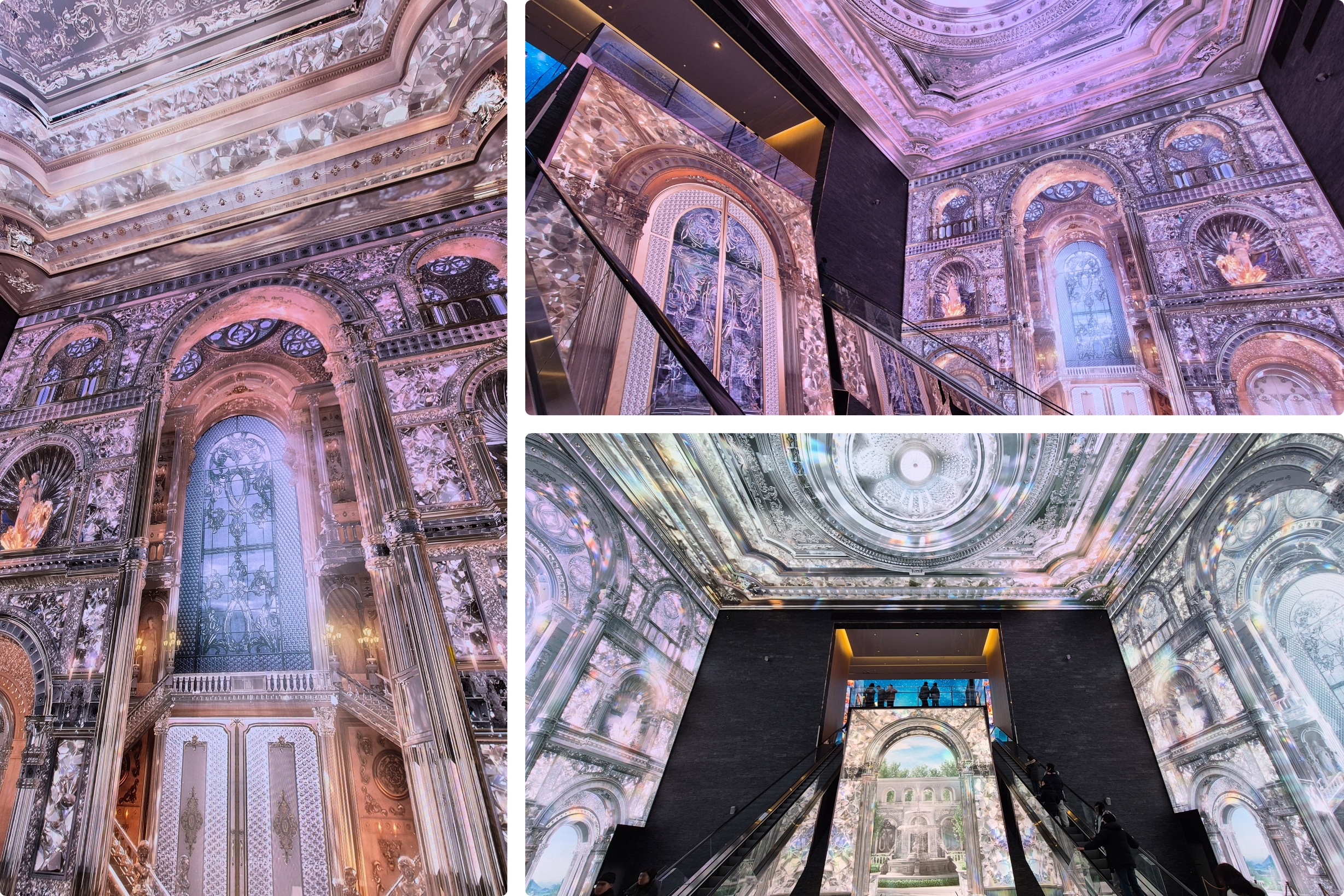 로툰다 반대편 엘리베이터를 내려가면 큰 천장과 벽을 꽉 채운 LED 영상을 볼 수 있다.