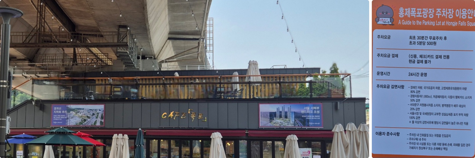카페 바로 앞에 있는 홍제폭포광장 주차장은 무료 30분 이후 요금이 발생한다.