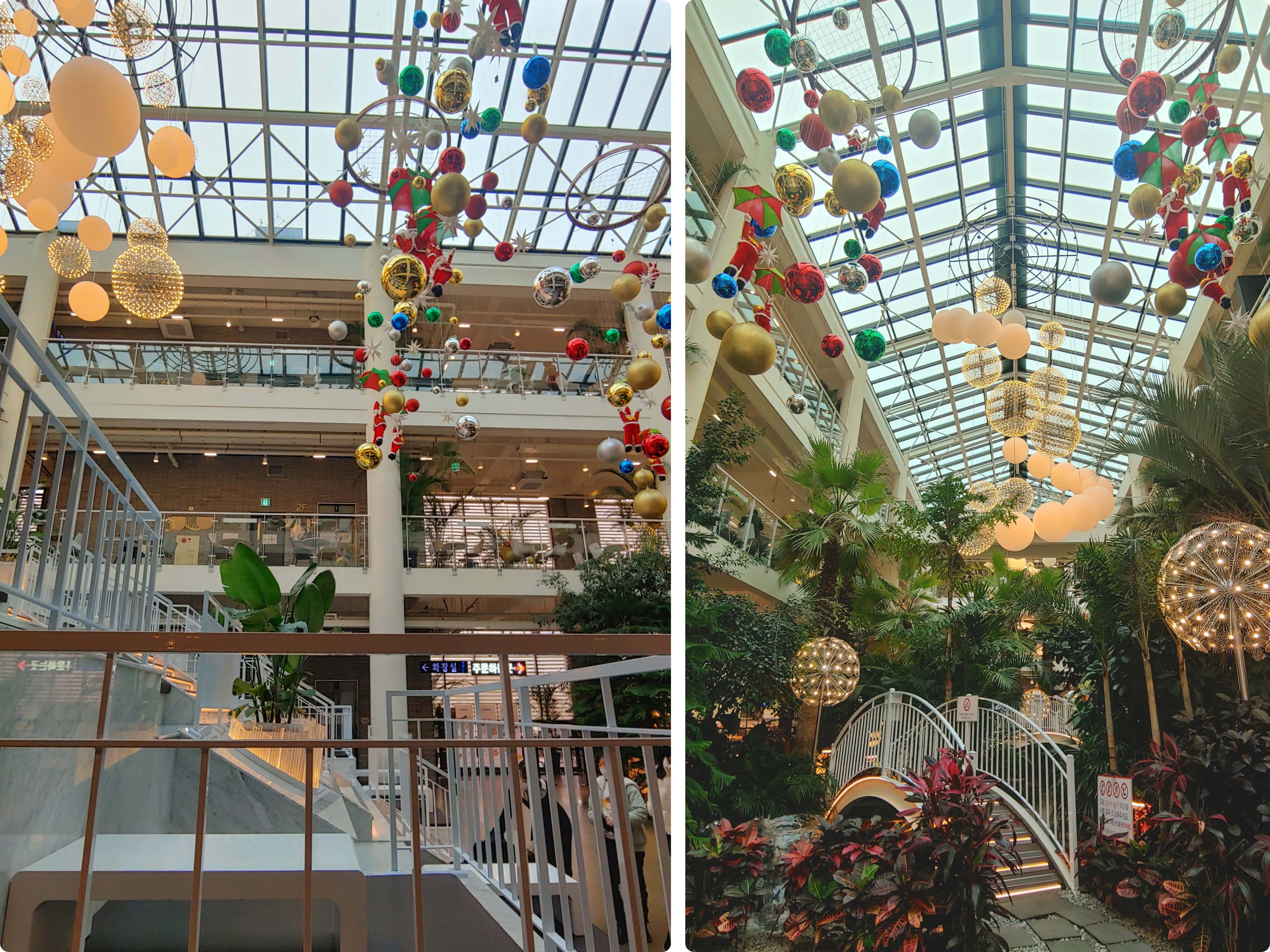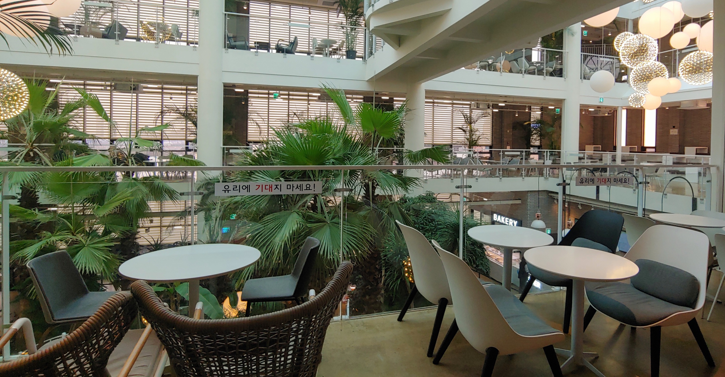 내부 공간이 넓어서 실내임에도 탁 트인 느낌이 드는 것은 장점이다. 식물원에 들어온 것처럼 숨 쉬는 공기부터 다르다는 느낌이 들기에는 너무 넓다.
