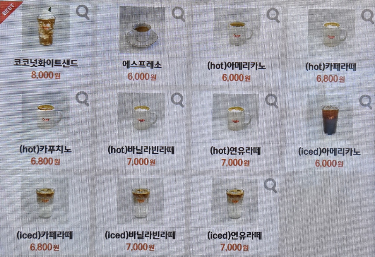 주문은 카운터 왼쪽 키오스크를 이용하면 된다. 음료의 가격은 교외의 뷰가 좋은 카페 수준이다.