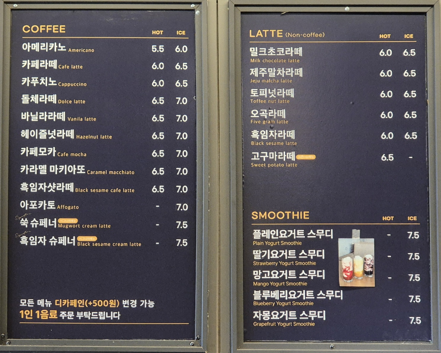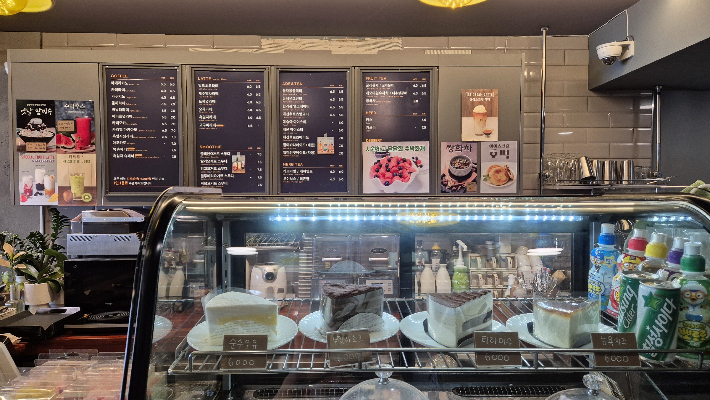 커피와 음료 가격은 프랜차이즈 카페와 대형 오션뷰 카페의 중간 정도이다.
