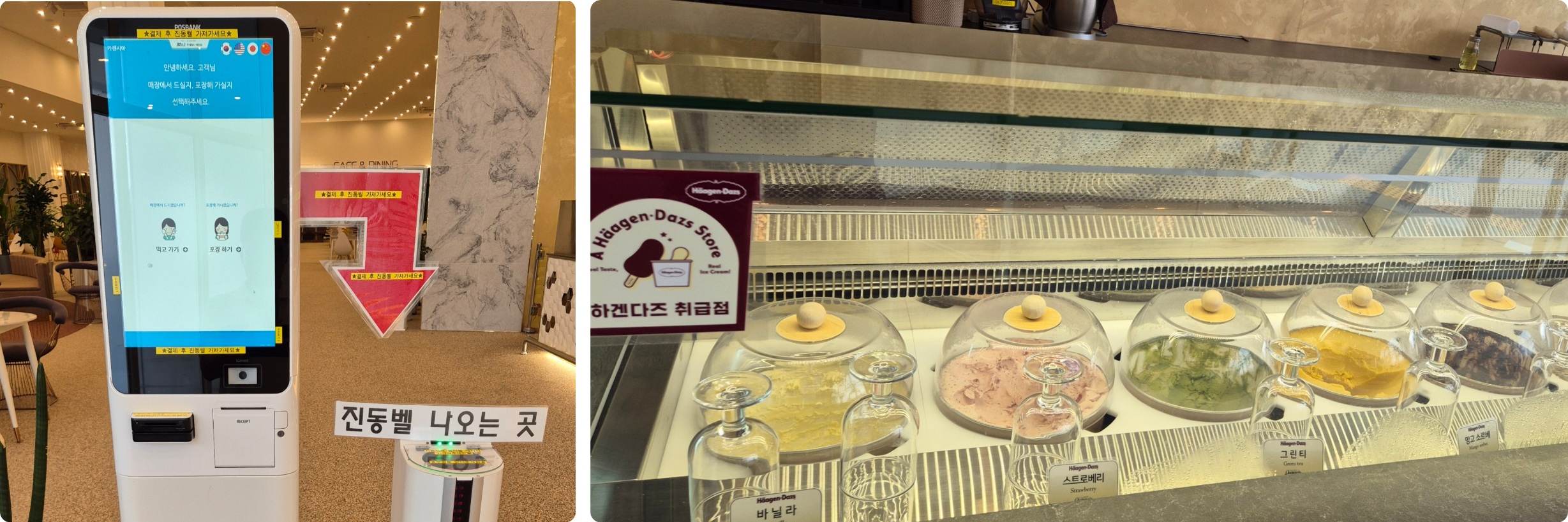 유형 경기장, 샐러드바, 커피, 아이스크림, 진동벨