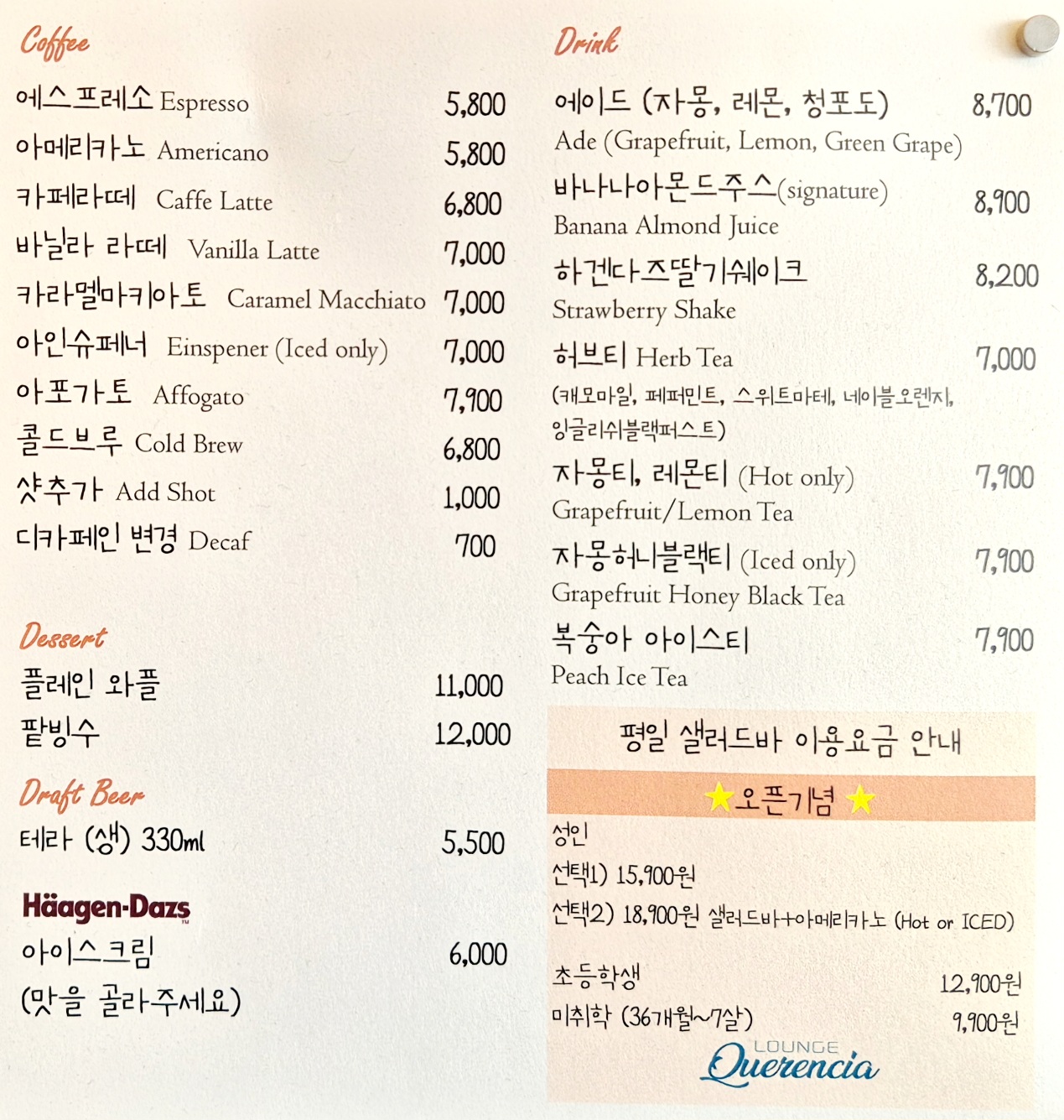 커피와 음료는 프랜차이즈 카페보다 조금 높은 가격대이다.