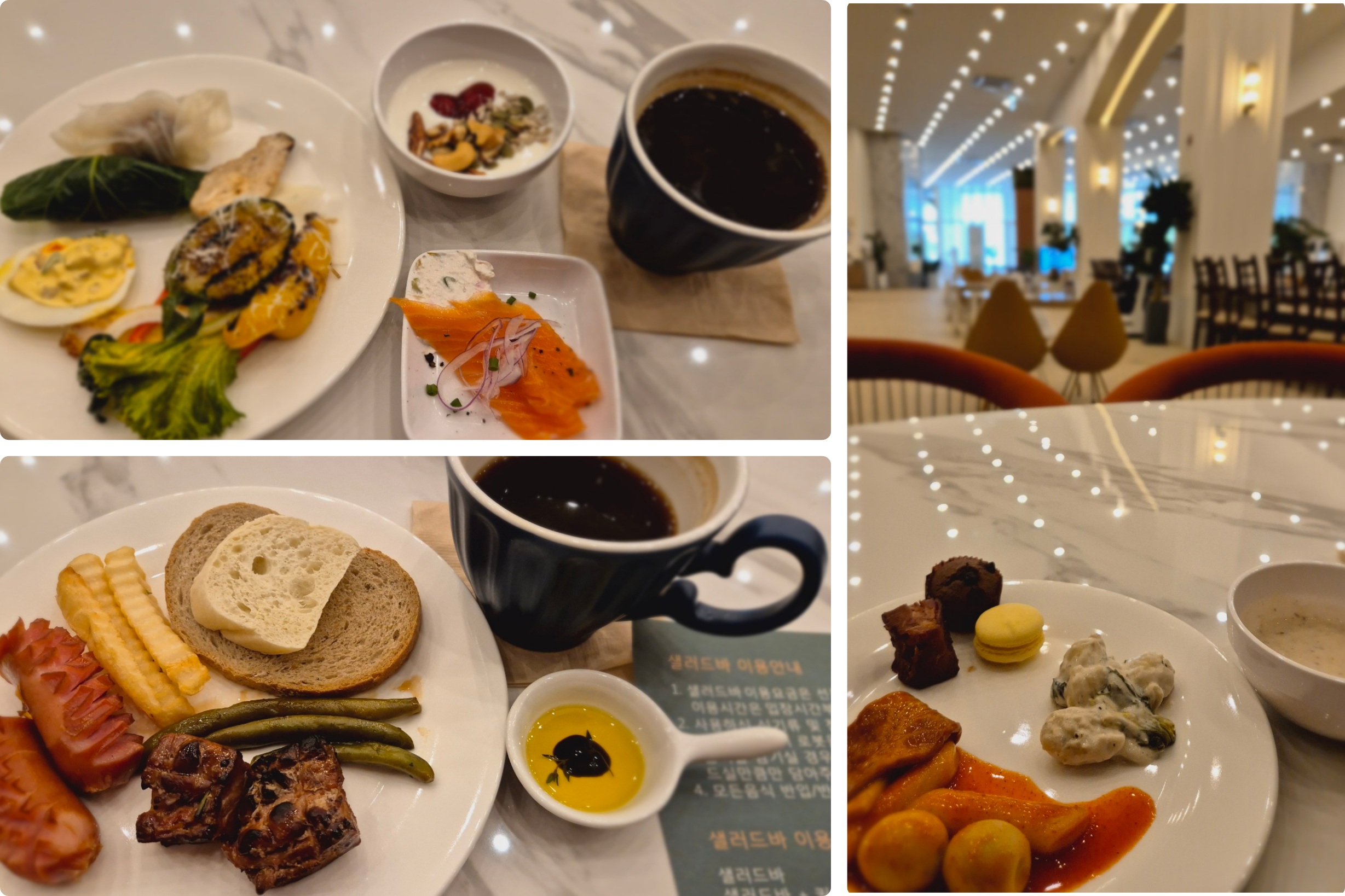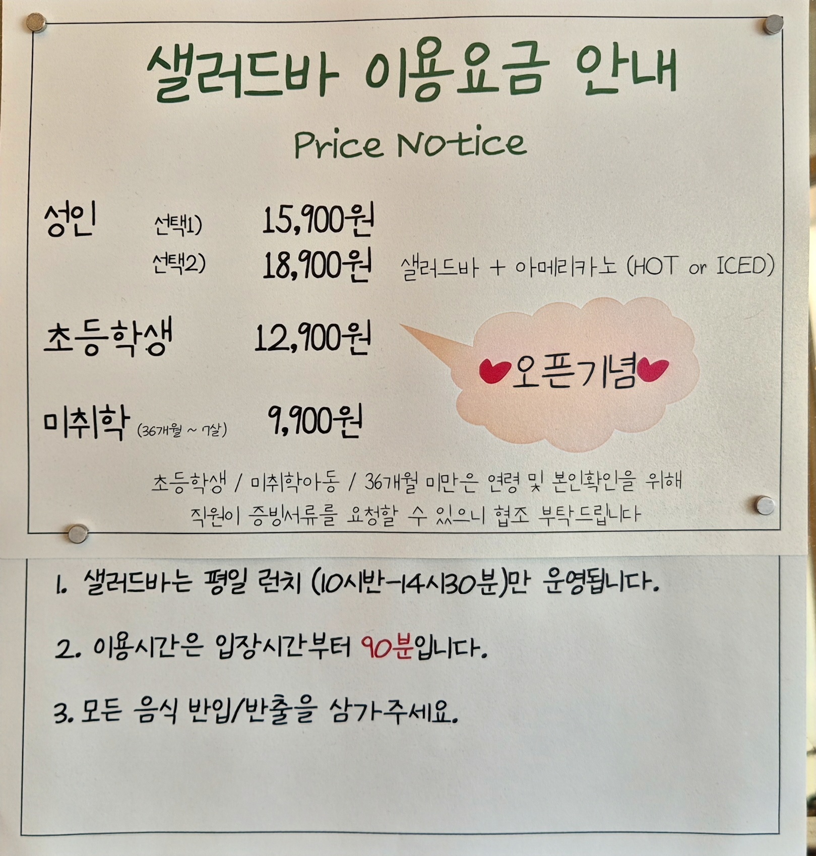 샐러드바는 평일 10시 30분에서 14시 30분에 이용할 수 있다.