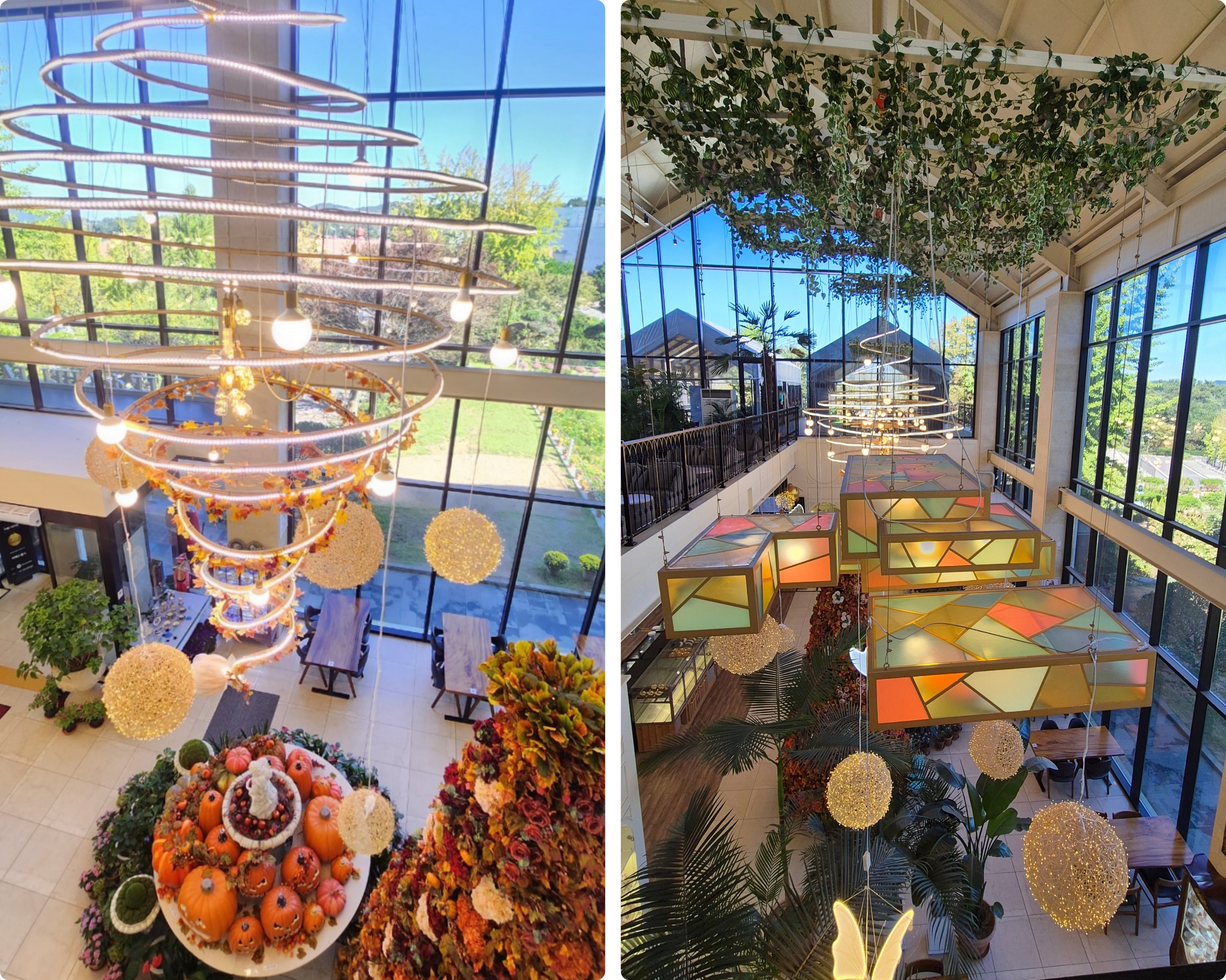 1층에는 대형 트리에 장식이 되어 있는데, 방문 당시에는 핼러윈 장식이 되어 있었다.