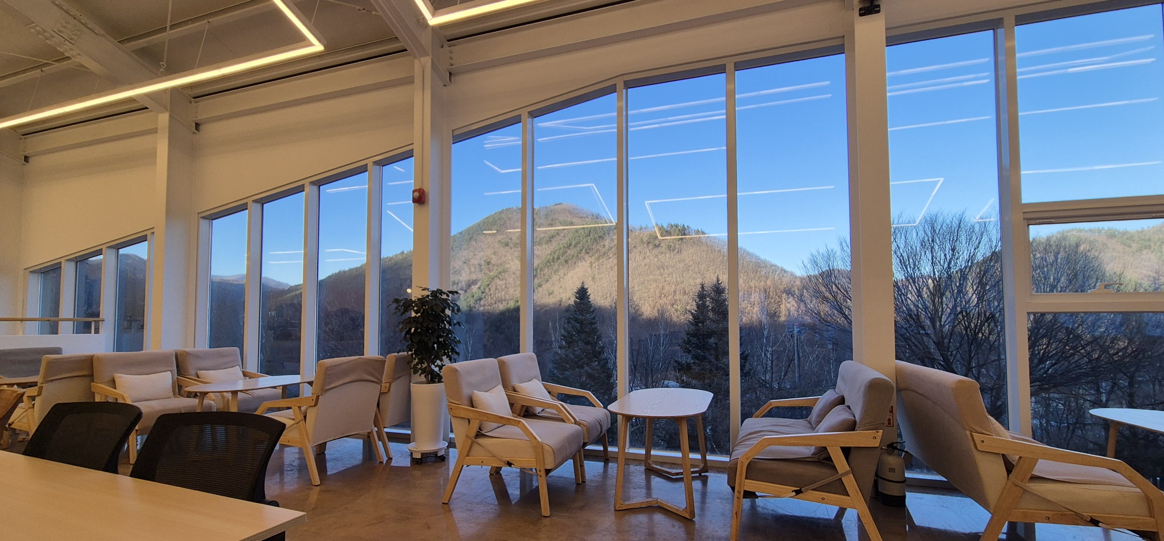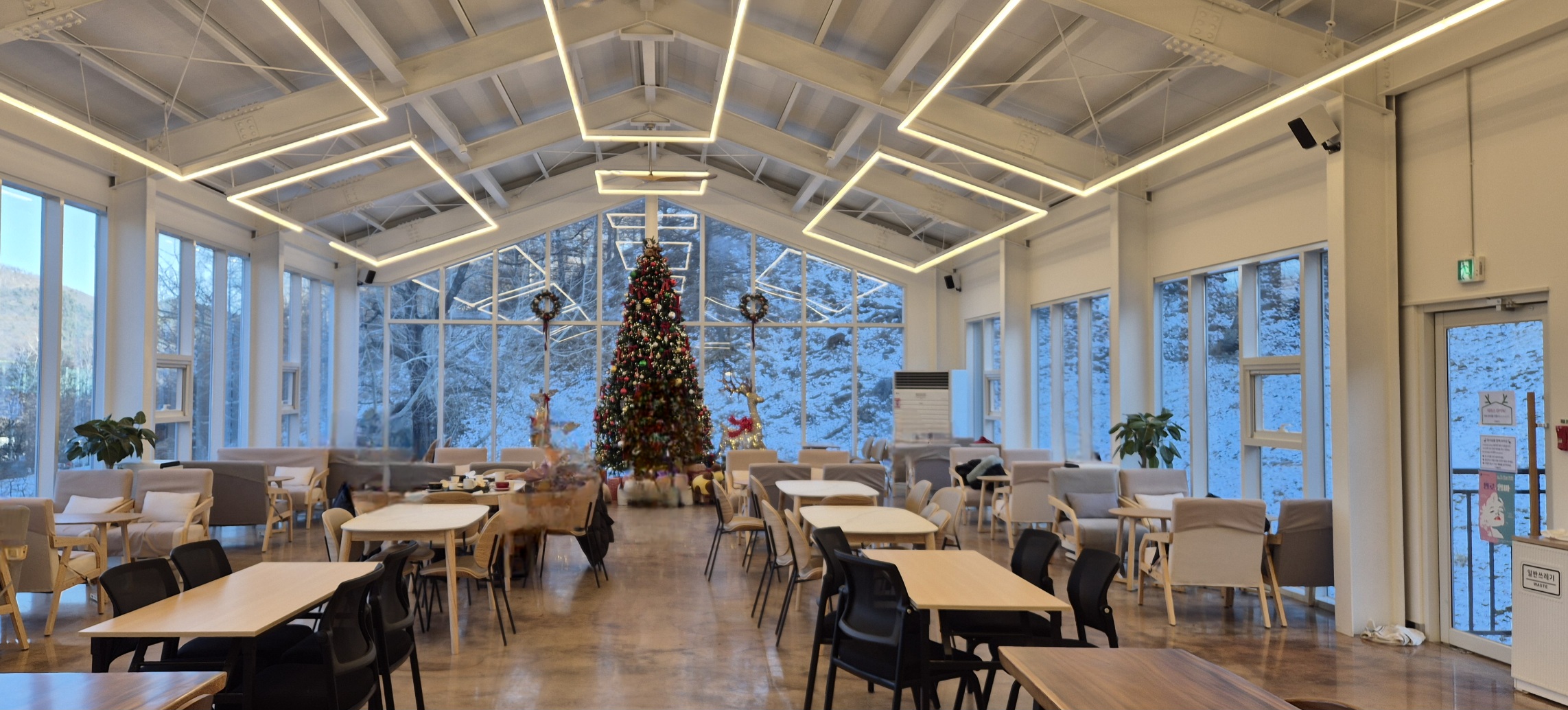 카운터 쪽을 제외한 3면이 통창으로 되어 있어서 개방감이 좋다.