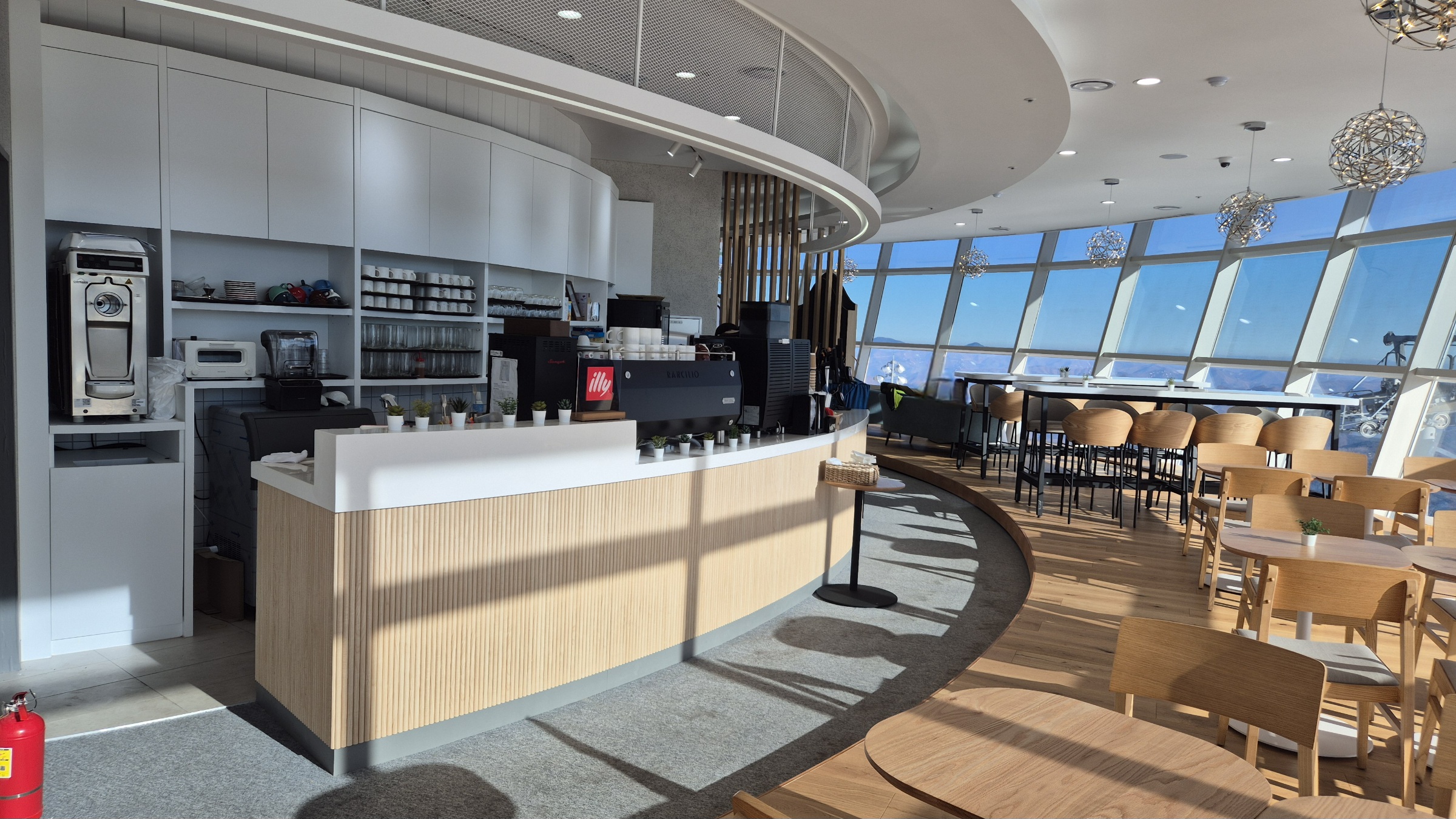 창가의 나무 바닥이 천천히 360도 회전하기 때문에 한 자리에 앉아서 주변의 다양한 경치를 즐길 수 있다.