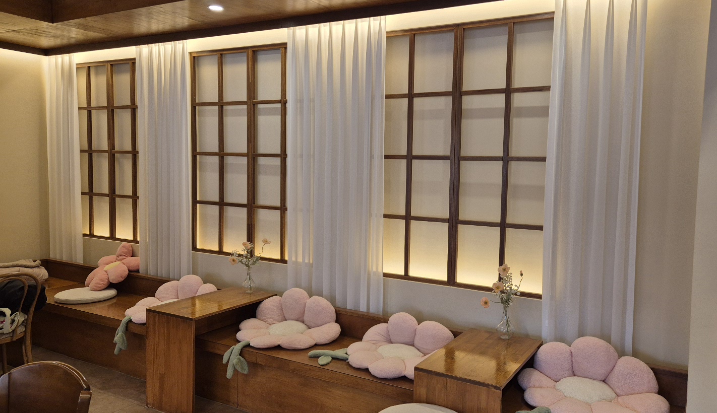 카페 내부는 넓지 않지만 햇볕이 잘 드는 창가자리와 좌식 마루 등 다양한 형태의 자리가 있다.