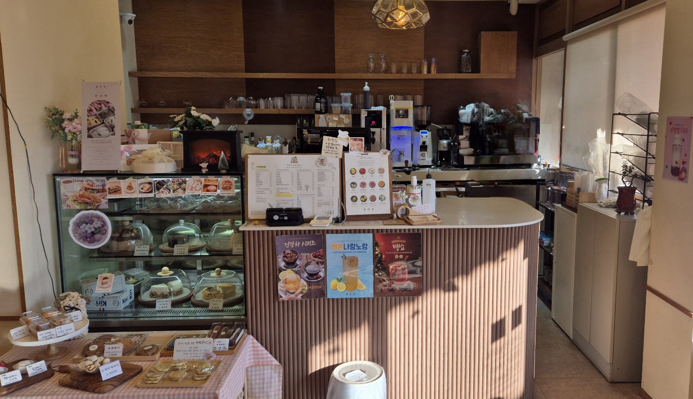 카페 앞쪽의 문으로 들어가면 바로 오른쪽에 카운터가 있다.