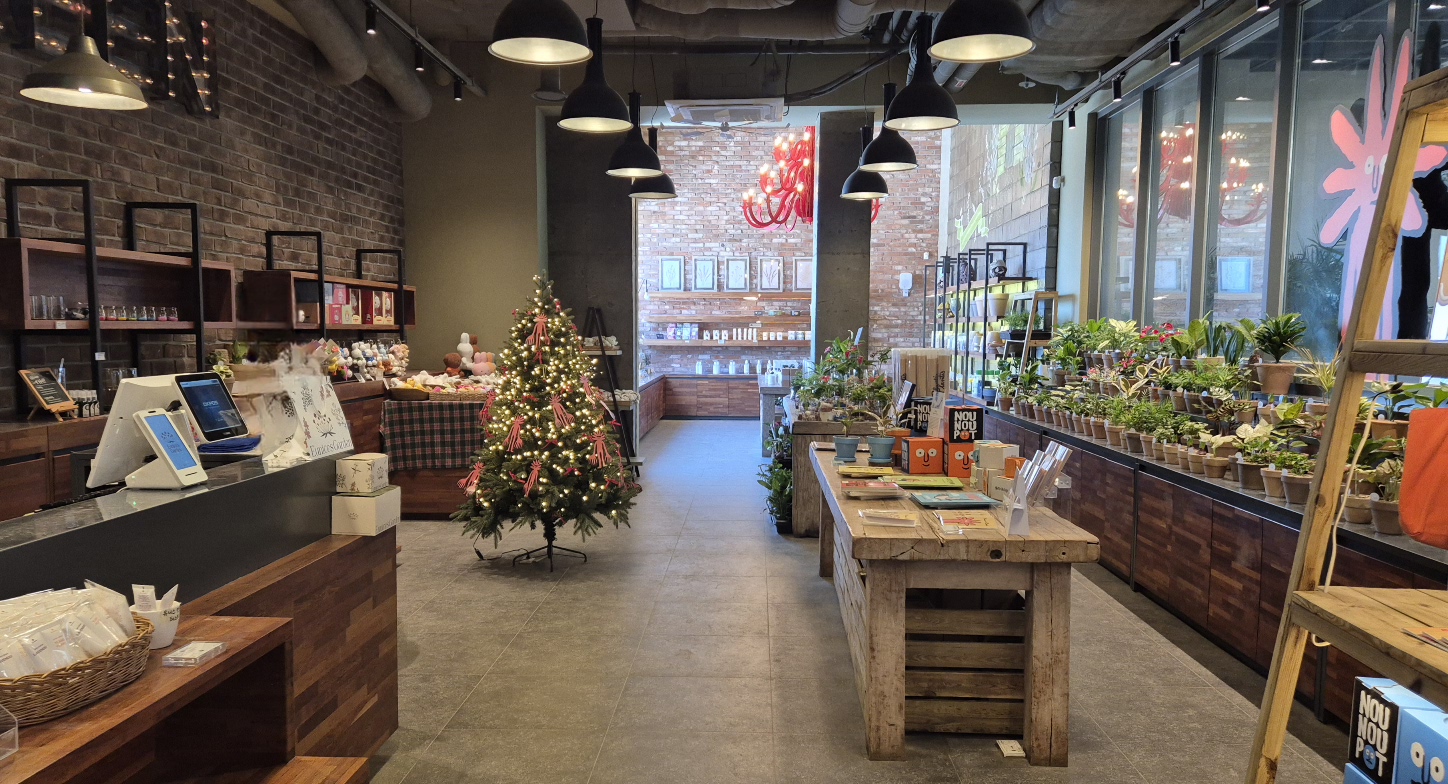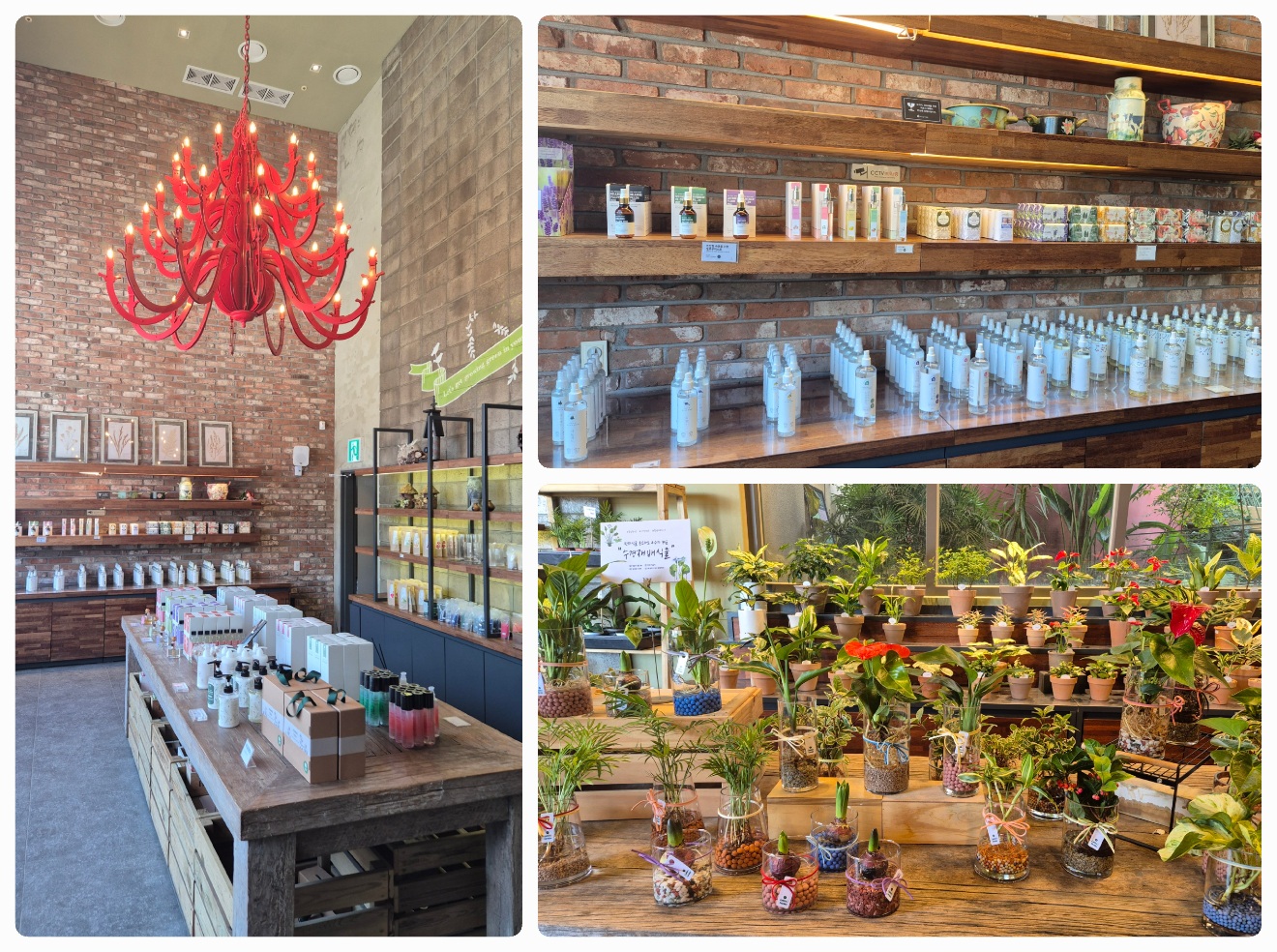 기프트 샵에서는 미니화분, 방향제, 핸드크림 등을 판매한다.