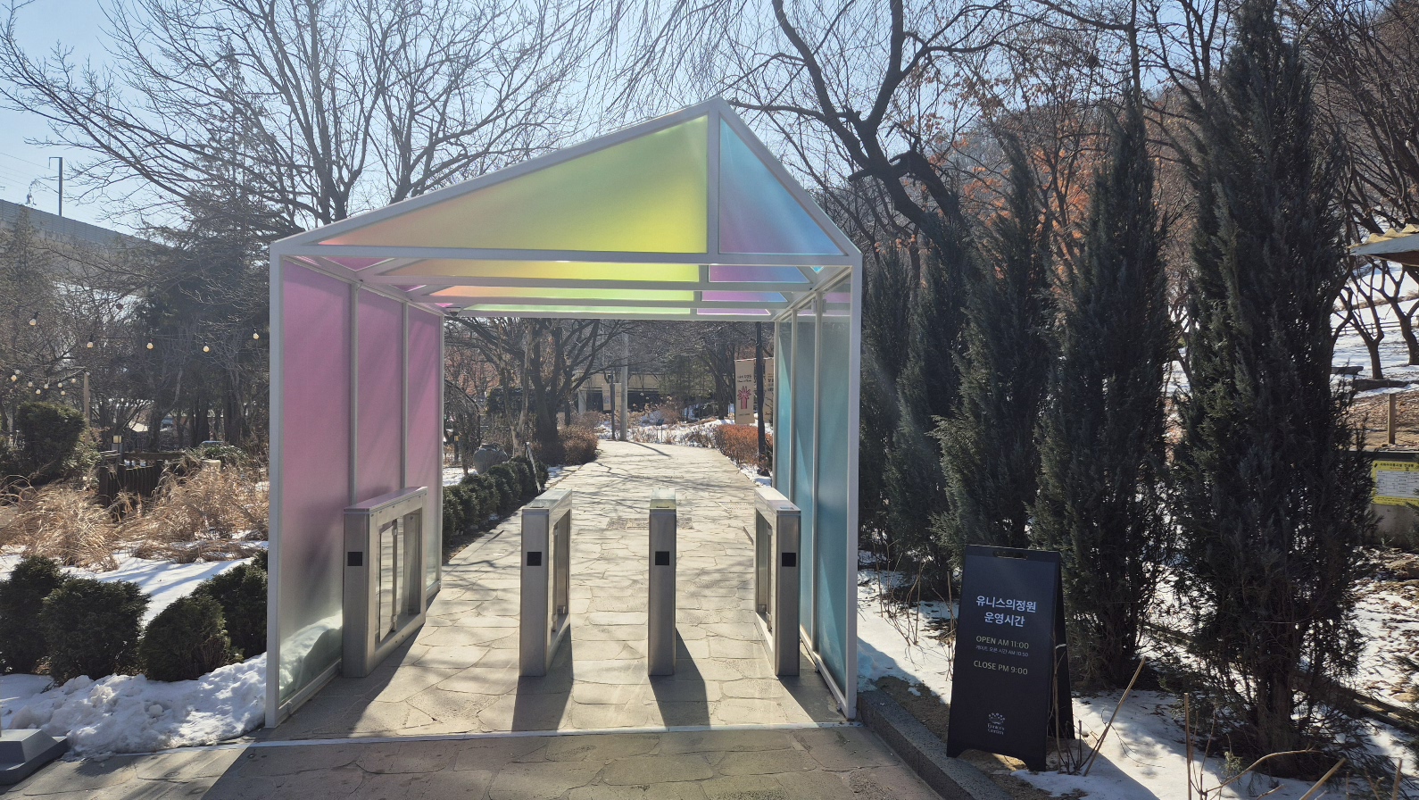 직원의 안내를 받아서 주차를 하고 카페를 향해서 가면 개찰구 같은 입구가 보인다.