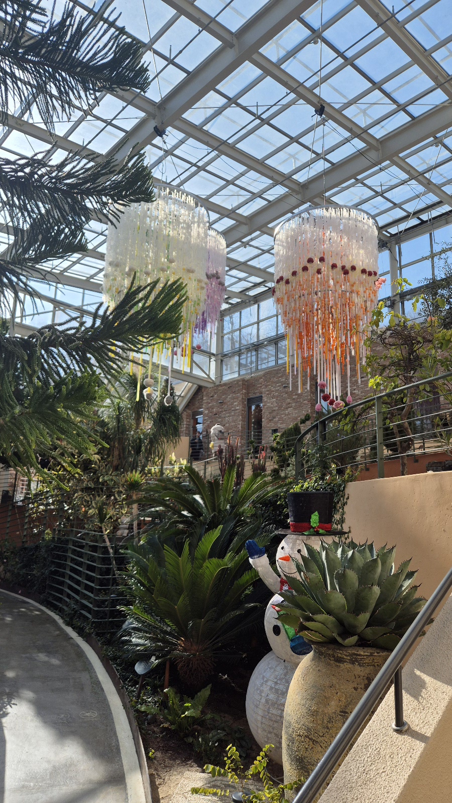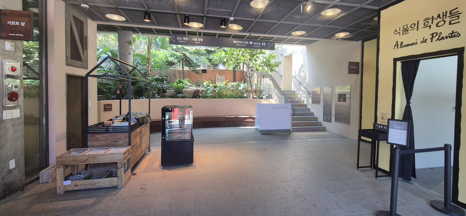 조금 더 안으로 들어가면 넓은 식물원과 유리 천장 아래의 큰 장식 들이 보인다.