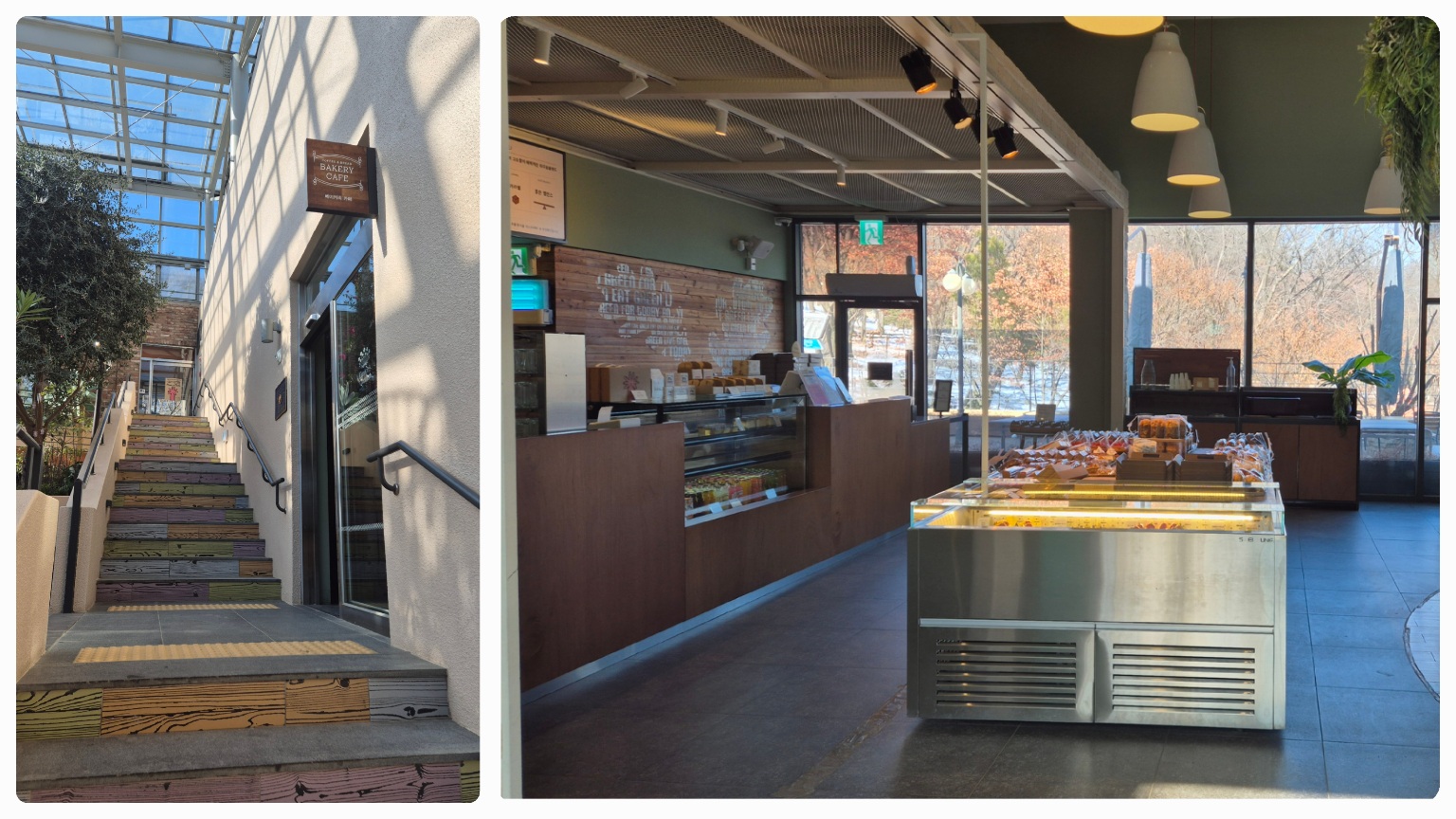 빵 진열대 안쪽은 통창으로 되어 있어서 야외 수목원 전체를 바라보기에 좋다.