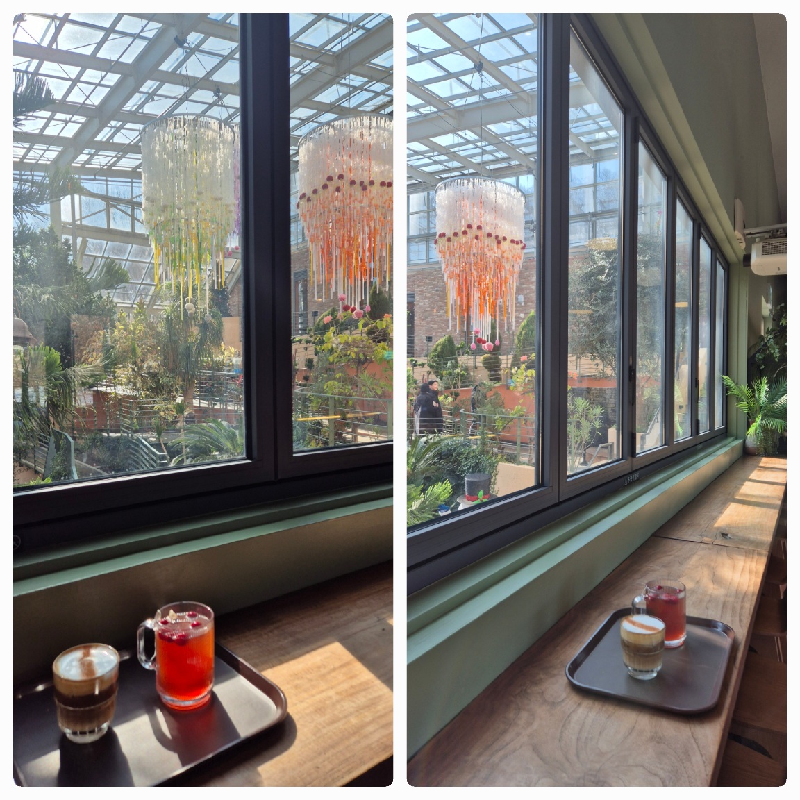 2층 카페 안쪽으로 돌아가면 실내 식물원이 잘 보이는 통창이 있는 자리가 있다.
