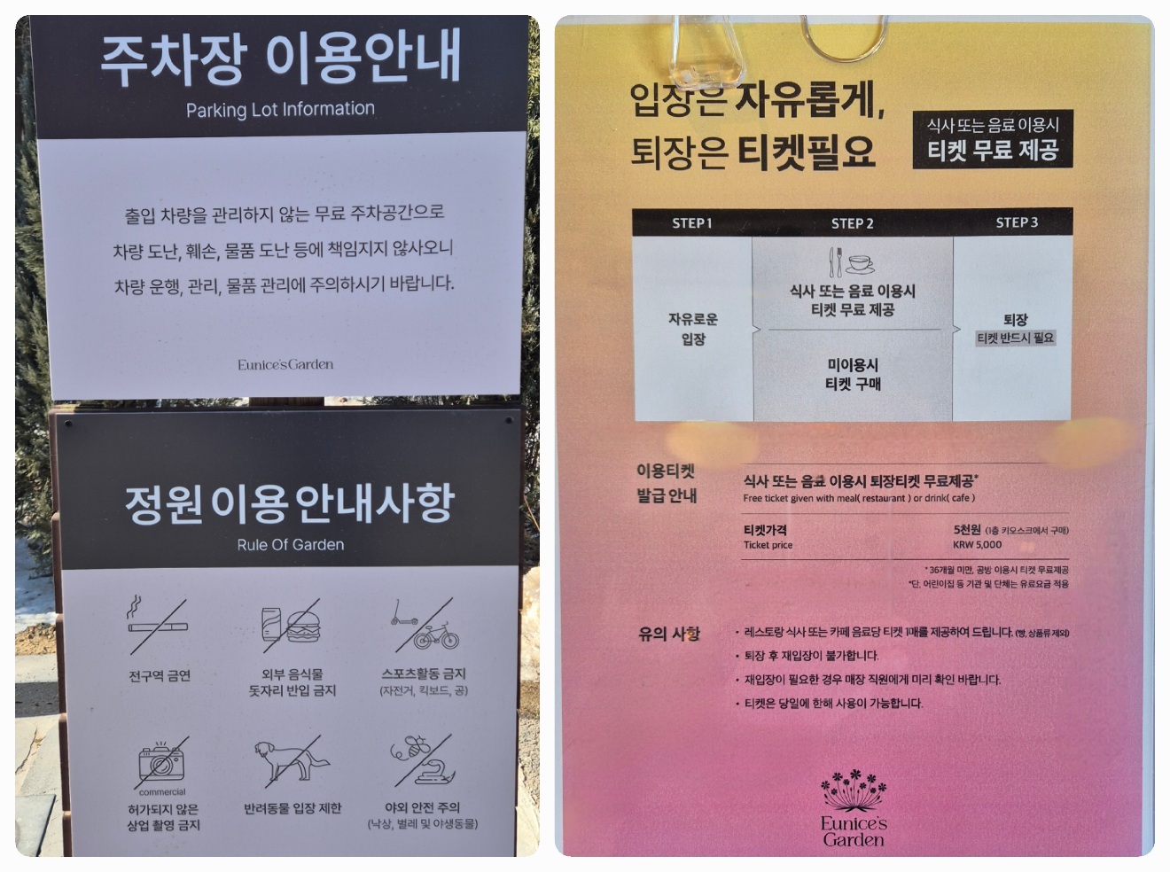 바로 옆에는 주차장과 정원 이용 안내가 있다.