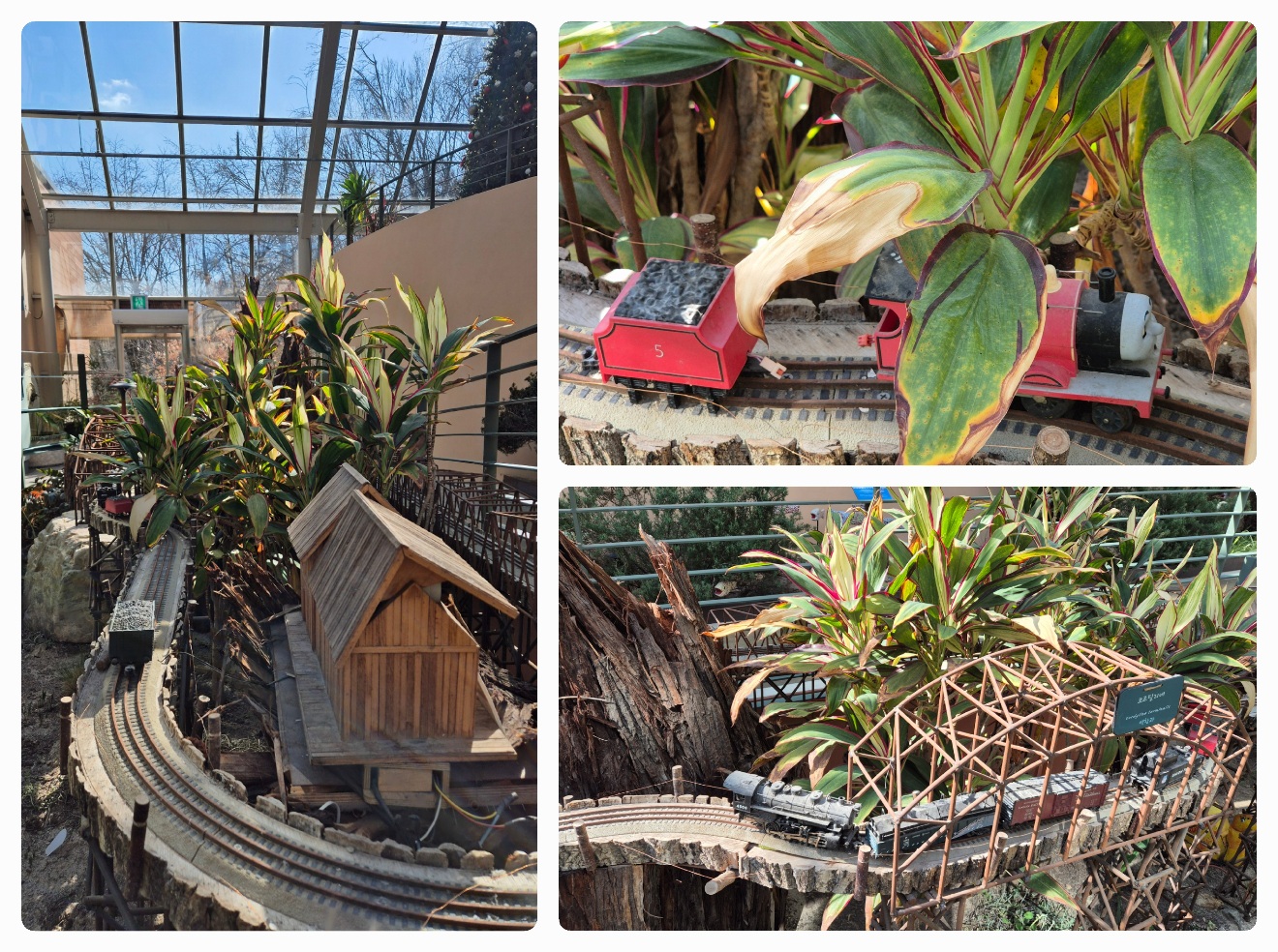식물원에는 다양한 식물과 함께 미니어처 선로 위의 토마스 기차와 폭포도 찾아볼 수 있다.