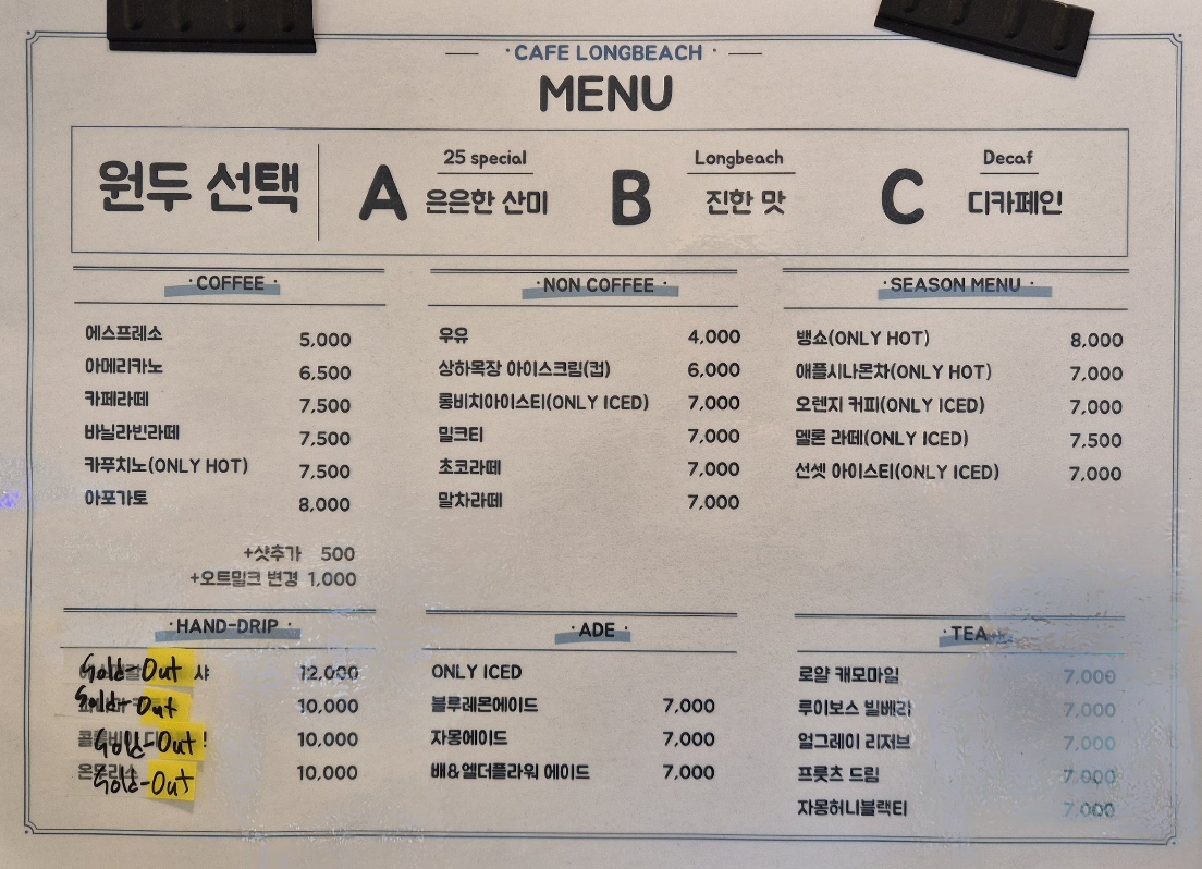 새롭게 바뀐 점 중심으로만 추가하였다.(카페의 자세한 소개는 아래 이전 글을 참고)