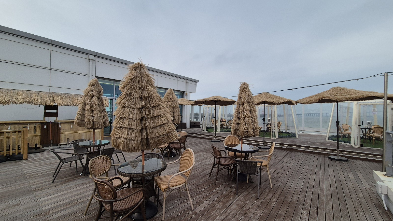 날씨가 더워지면서 난로가 있던 투명한 돔모양의 공간은 사라졌다. 대신 테이블 주위에서 더위를 식혀주는 분무가 주기적으로 나오고 있었다.