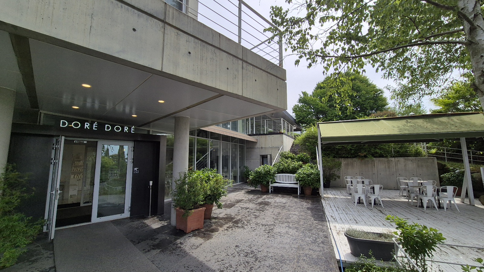 전용 주차장에 차를 세우고 입구를 향해서 걸어가면 야외 공간과 카페 건물들에 대한 안내가 나온다.