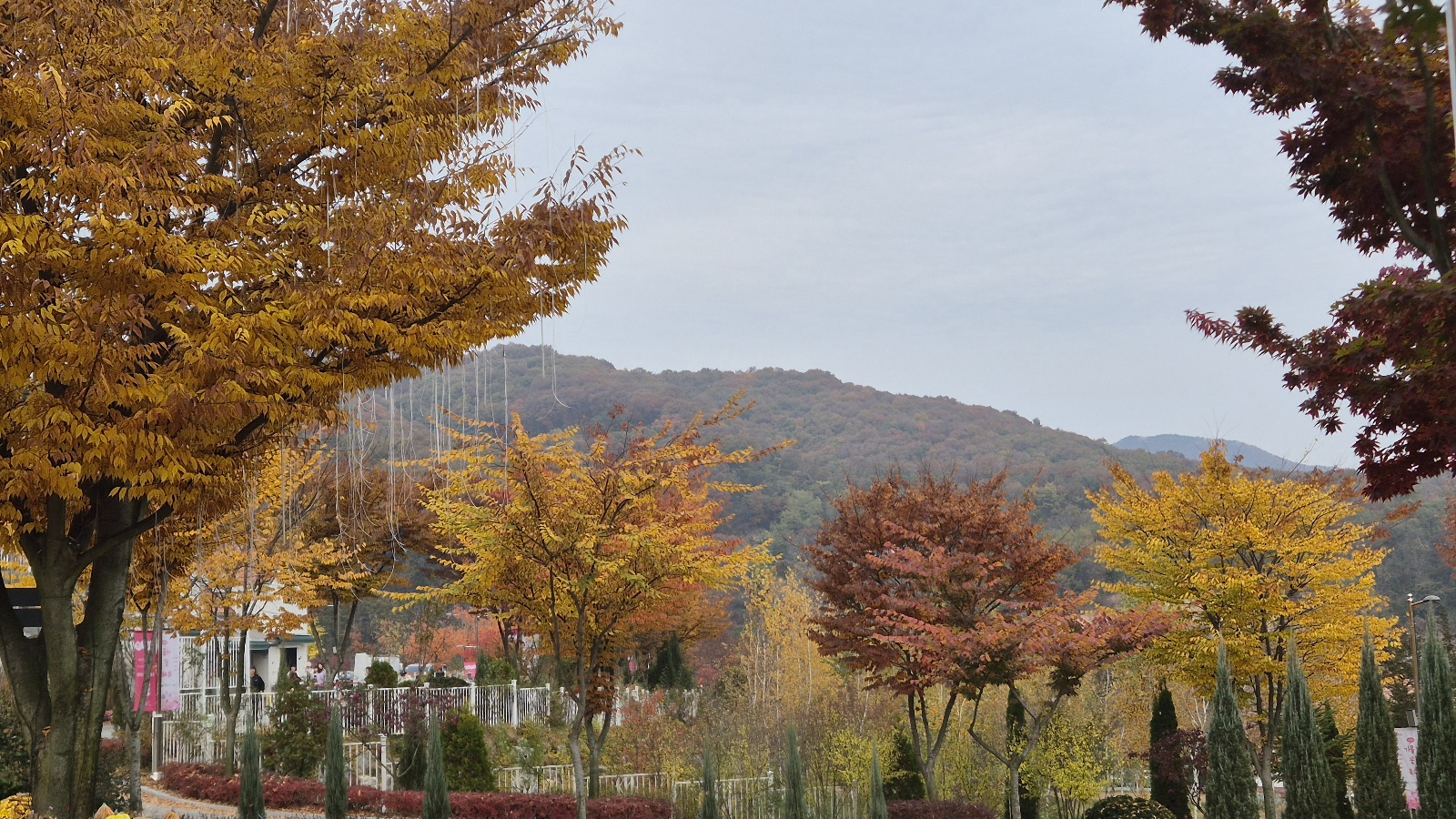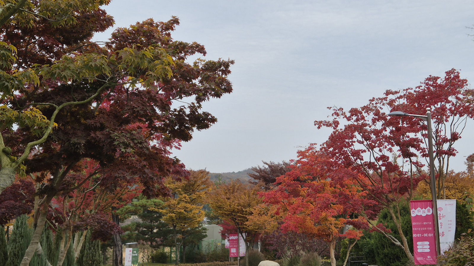 입구에서부터 다양한 색상의 단풍나무들이 보인다.