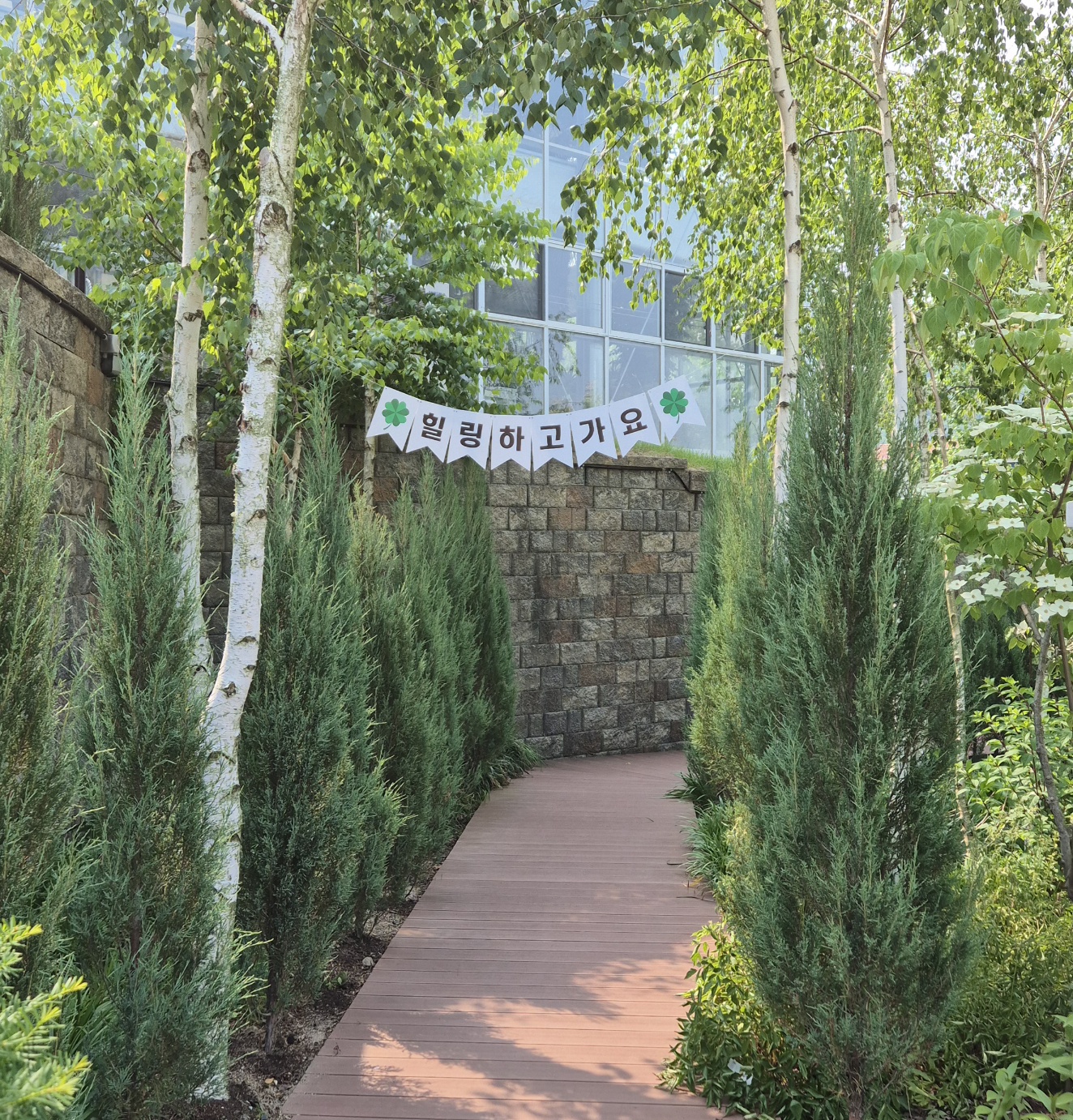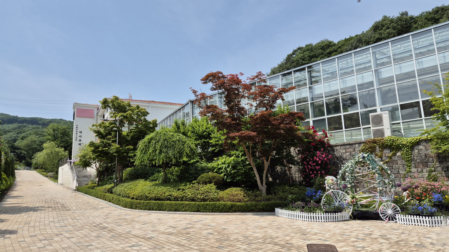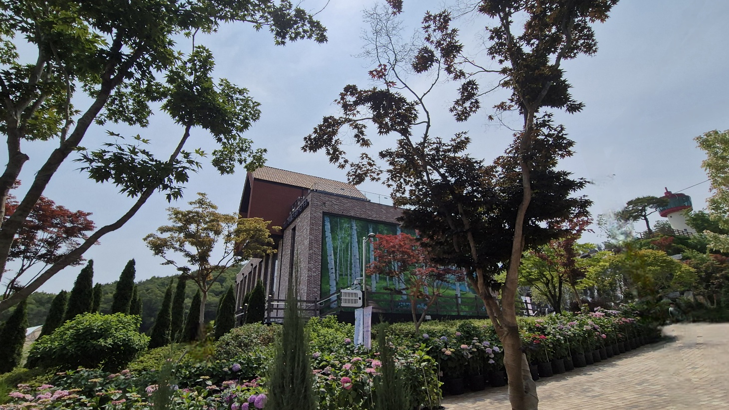 전망대에서 온실 반대편으로 내려오면 야외무대가 보이는데 꽃이 심어져 있는 포토 존이다.