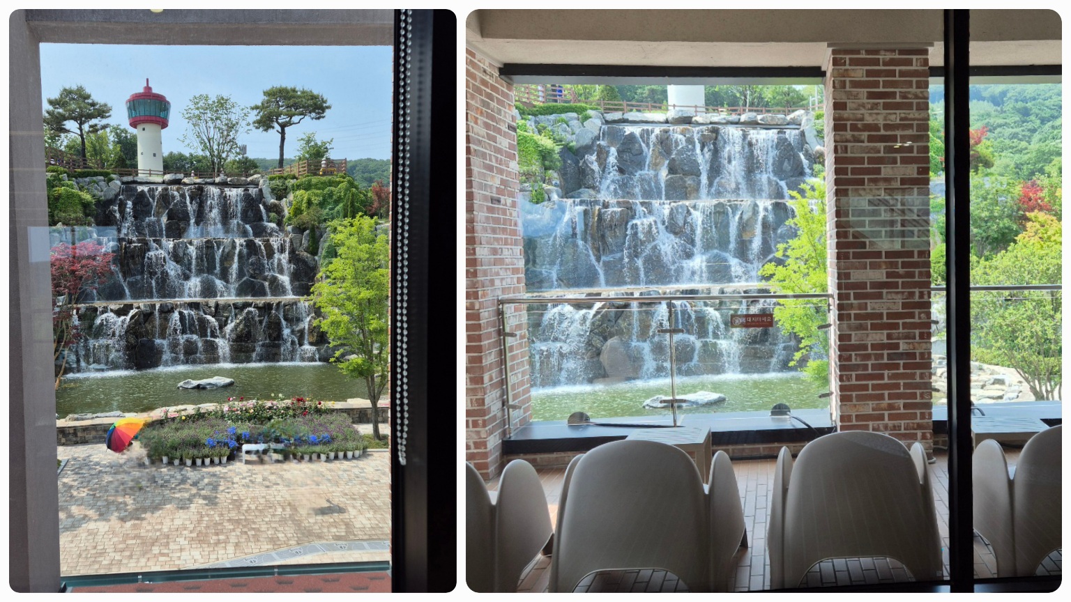 조금 더 올라가면 폭포가 보이는데, 뒤로 돌아보면 카페 입구가 보인다.