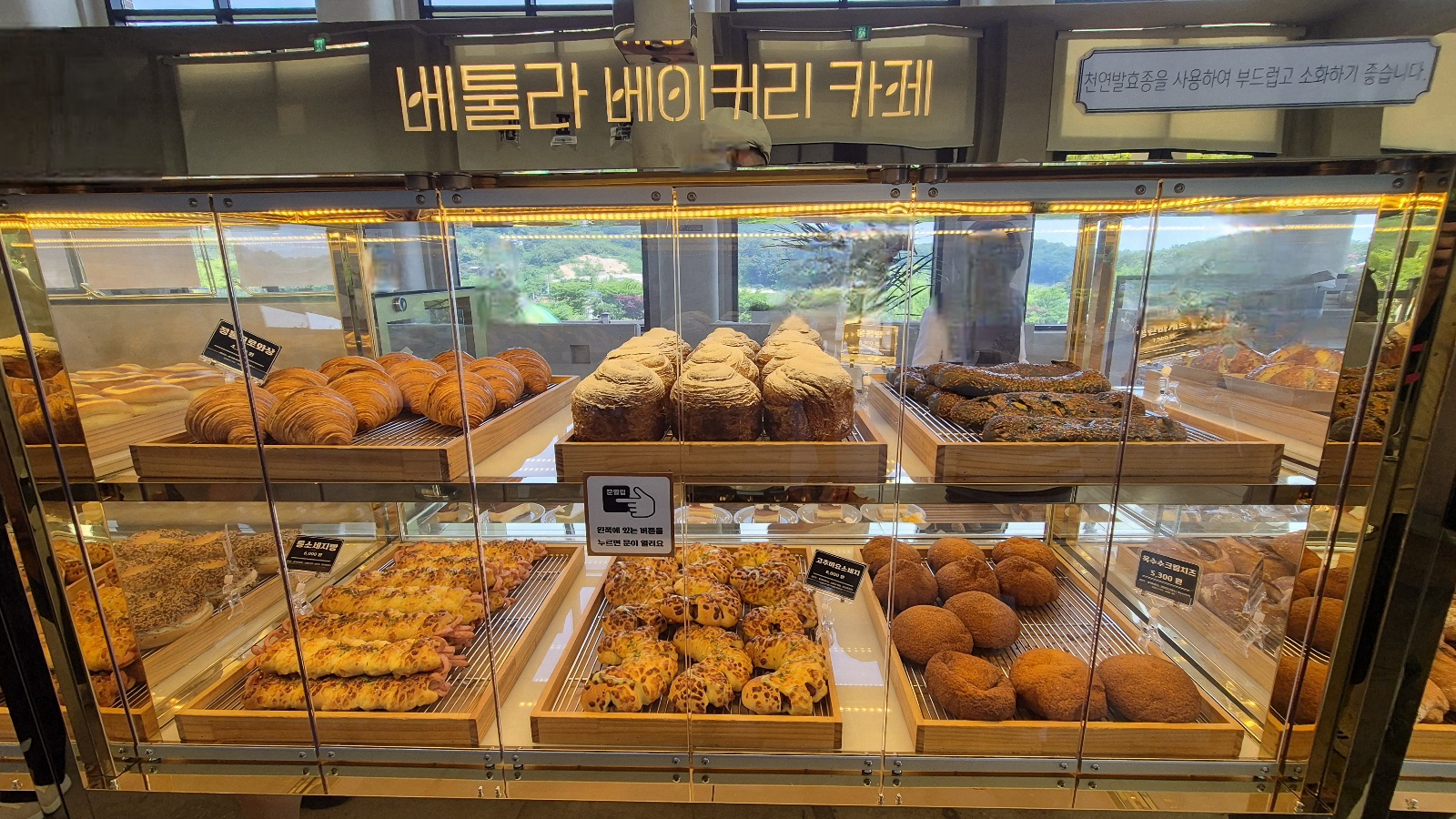 카페 안으로 들어가면 카운터와 빵 진열장이 보인다.