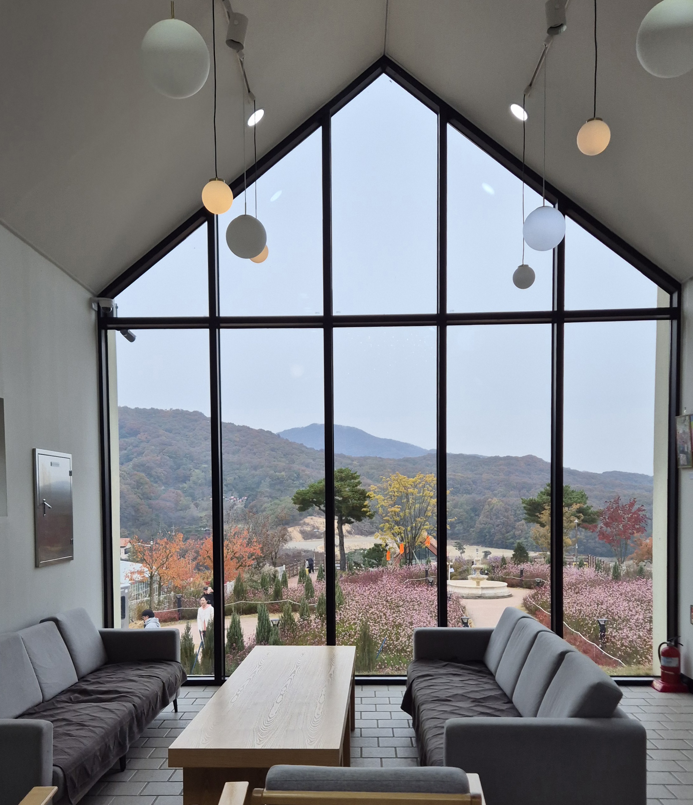 전망대 타워의 휴게실 앞은 핑크색 꽃 정원이다.