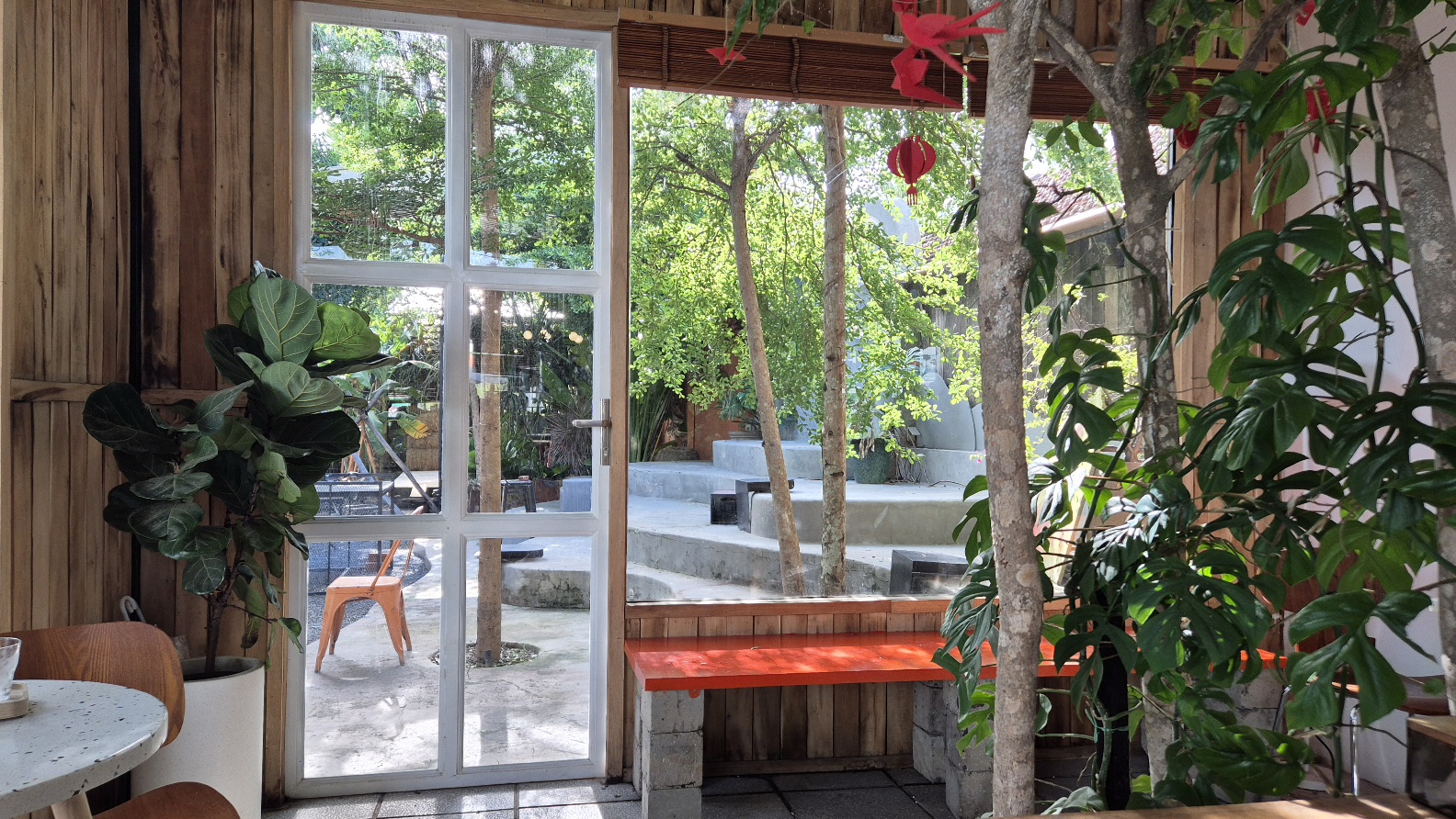 베트남 로컬 카페는 외부와 이어지는 열린 공간으로 뚫려있는 경우가 많지만, AM - PM은 문과 창으로 실내와 실외가 분리된다.