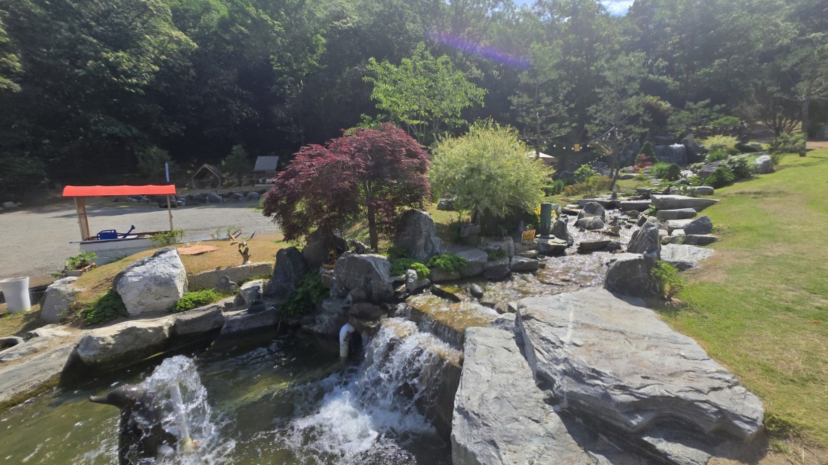 산책로 중간에는 작은 폭포와 계곡도 설치되어 있다.
