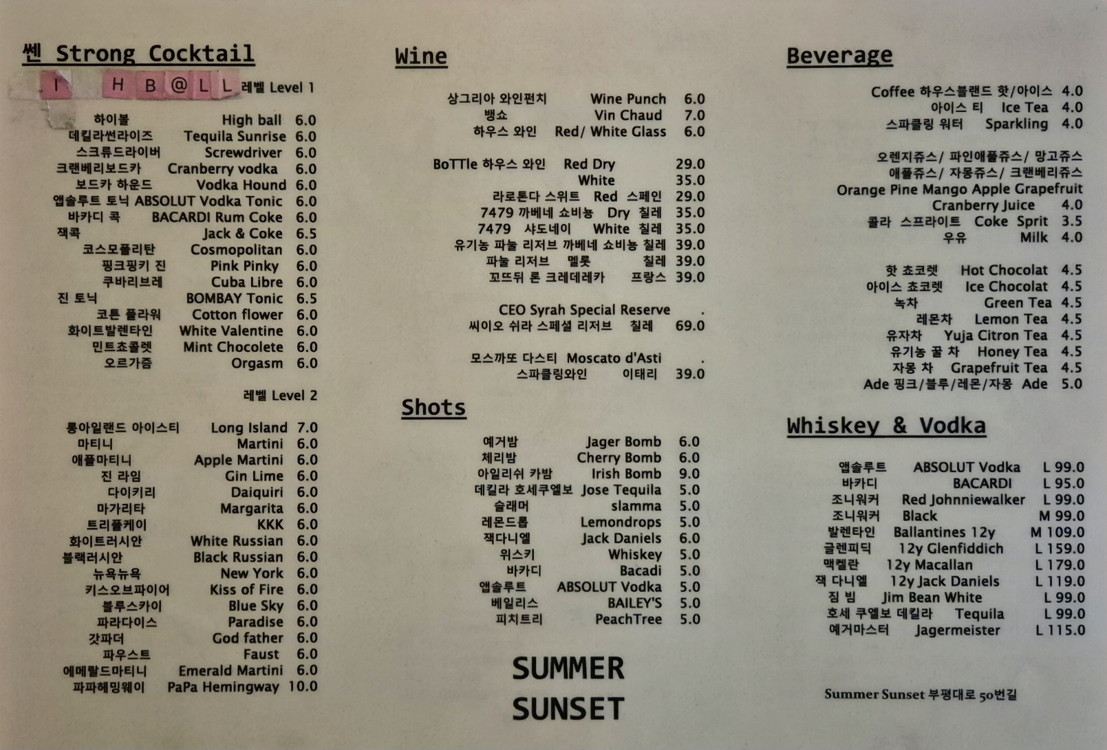 Summer Sunset은 부평대로에서 상가가 이어지는 길의 거의 끝에 있다.