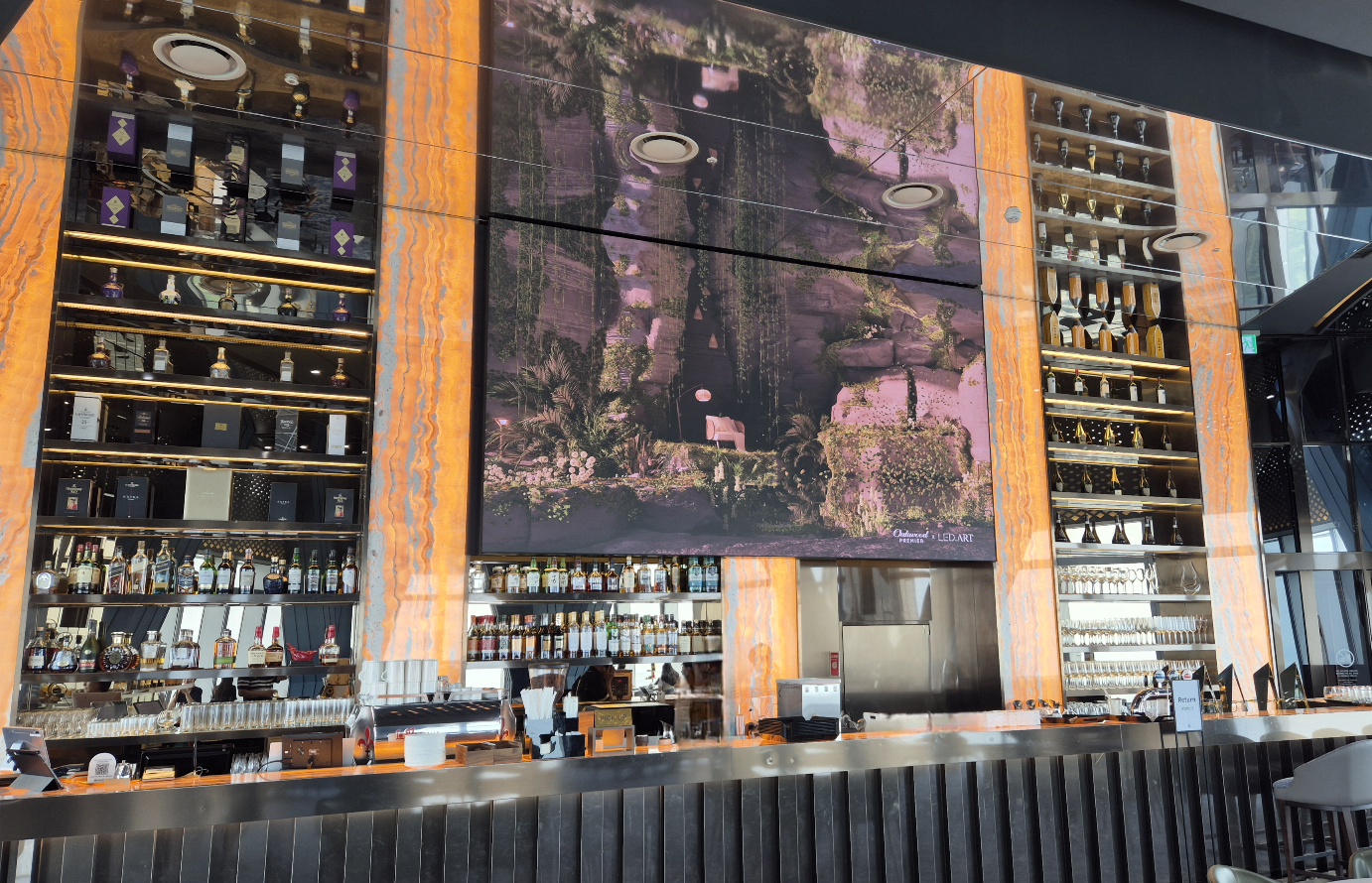 안쪽 바 위에는 미디어 아트 월이 설치되어 있다.