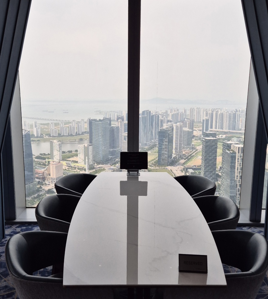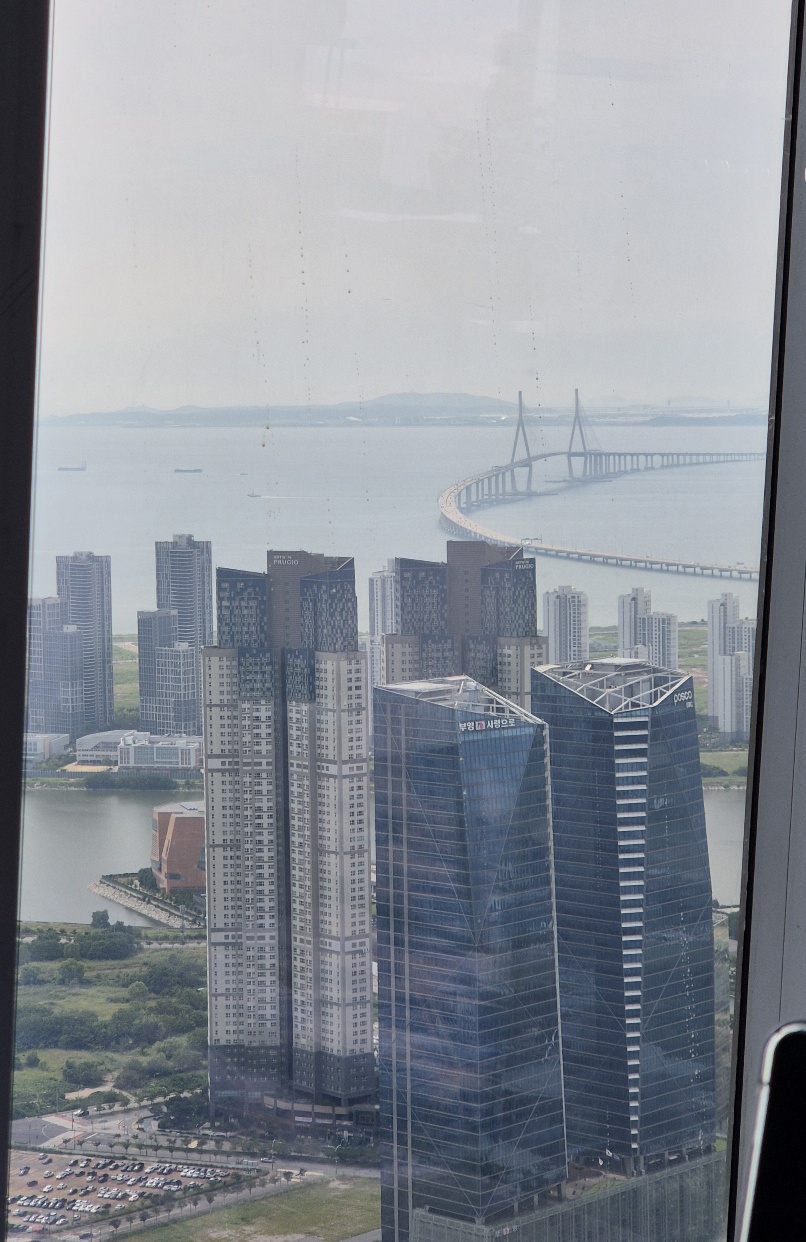 다른 두 면은 통창으로 되어 있어서 65층 높이에서 송도 신도시와 서해를 내려다볼 수 있다.