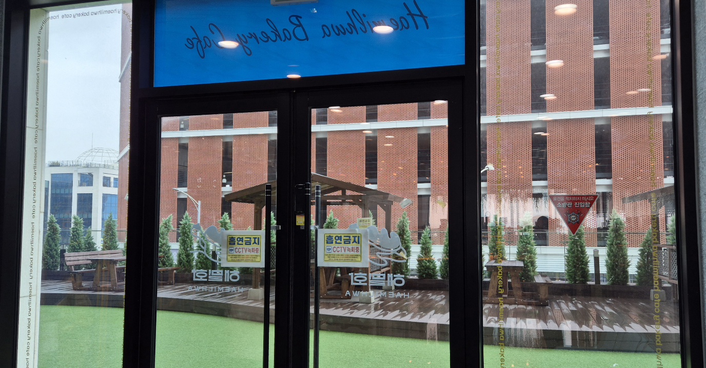 오른쪽 창 밖에 보이는 테라스는 문이 잠겨 있다.