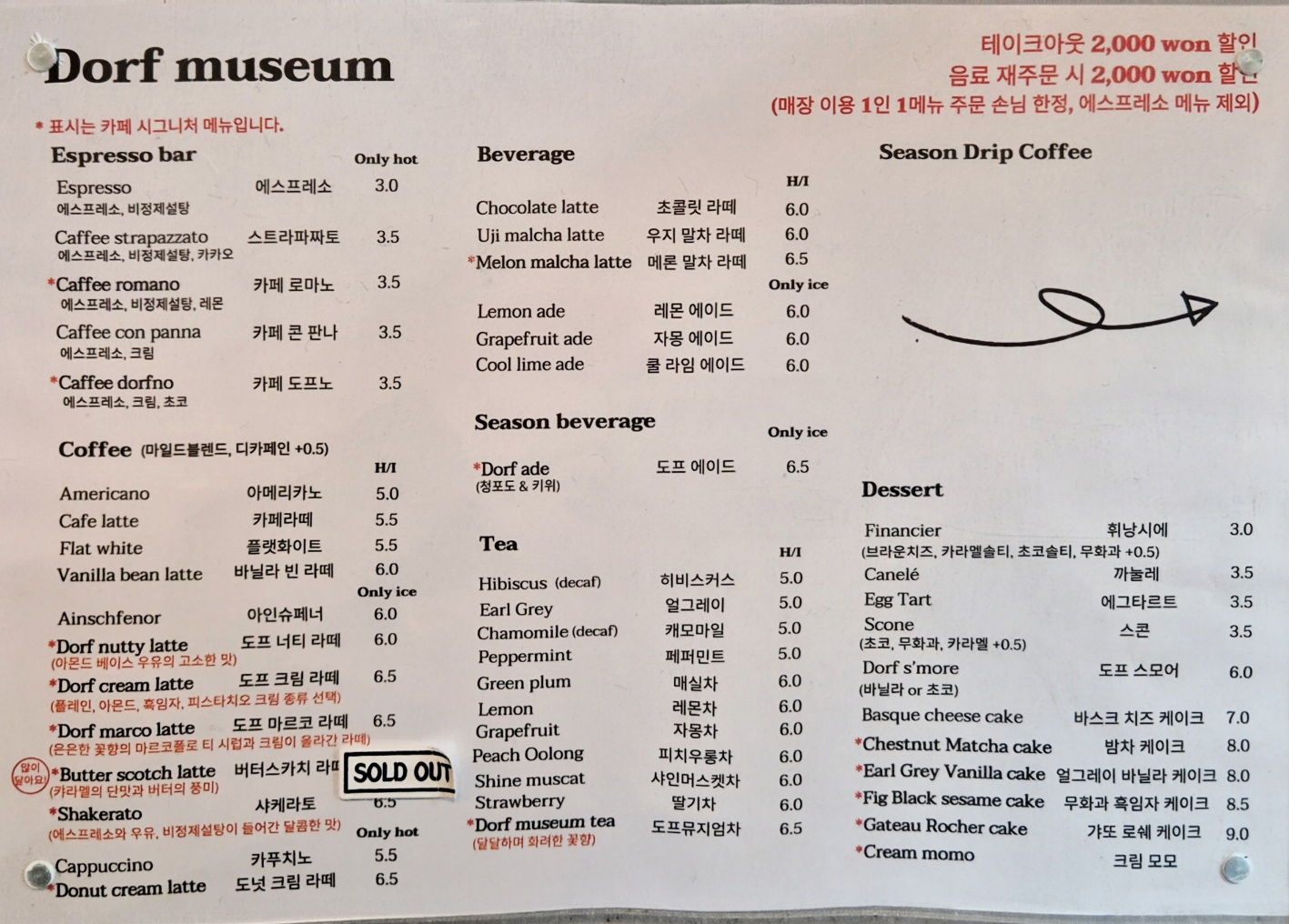 테이크 아웃 할인이 적용되는 메뉴도 있다.