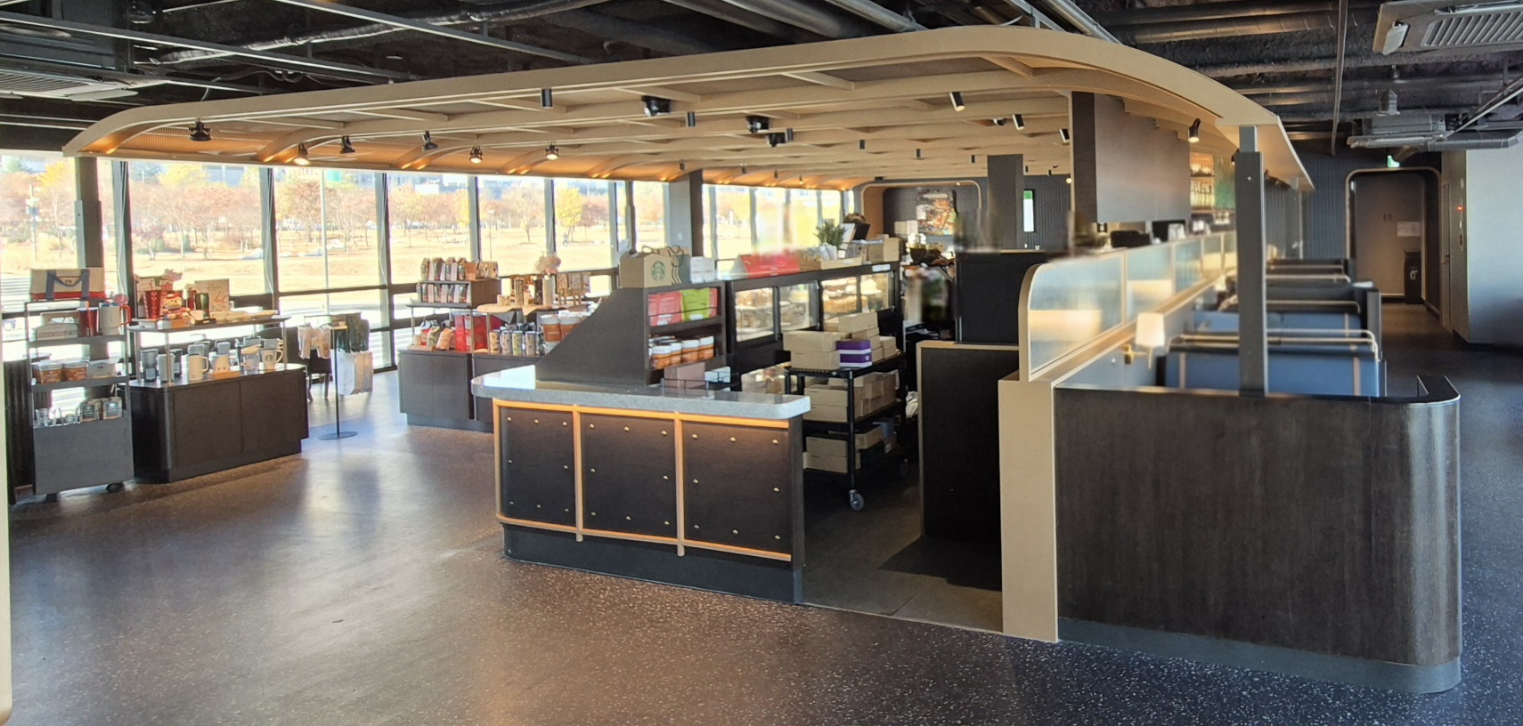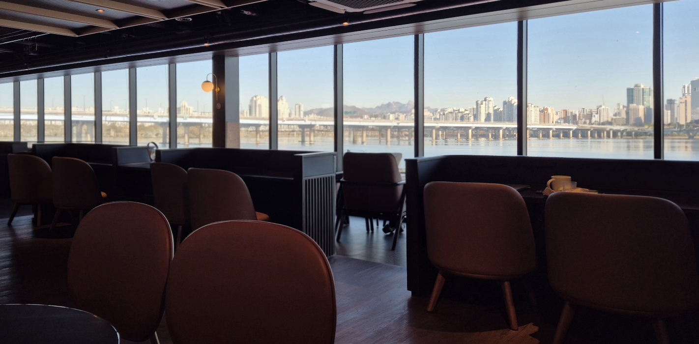 공원 반대쪽 통창을 통해서 한강이 보인다는 점이 다른 매장과 차이점이다.
