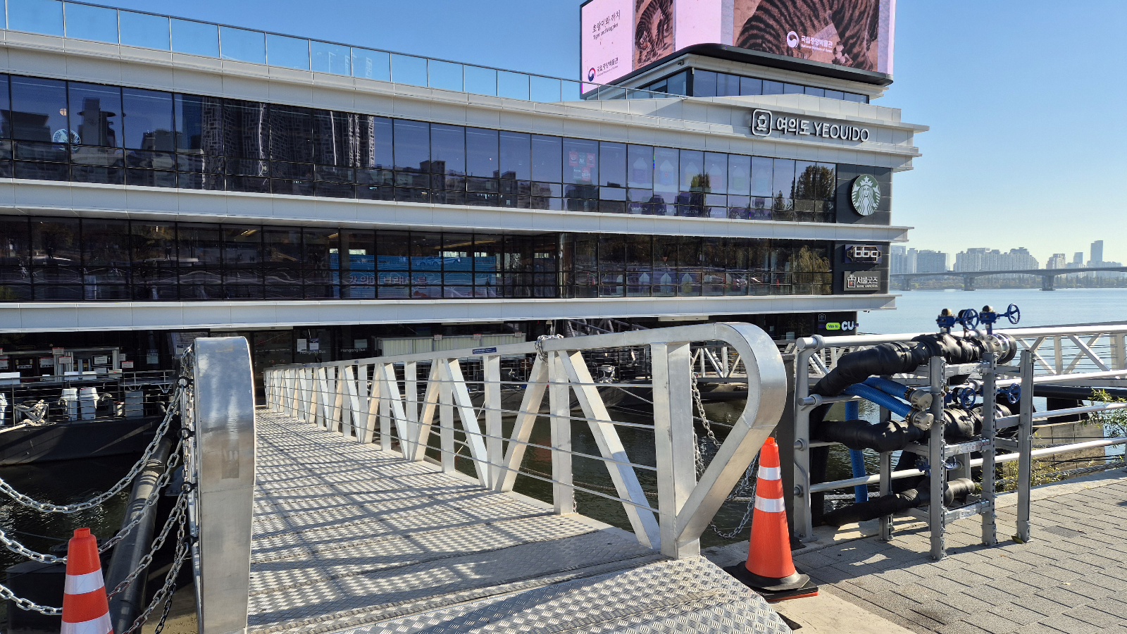스타벅스 여의도한강공원은 여의나루역에서 도보 5분 거리의 한강버스 여의도 선착장 3층에 있다.