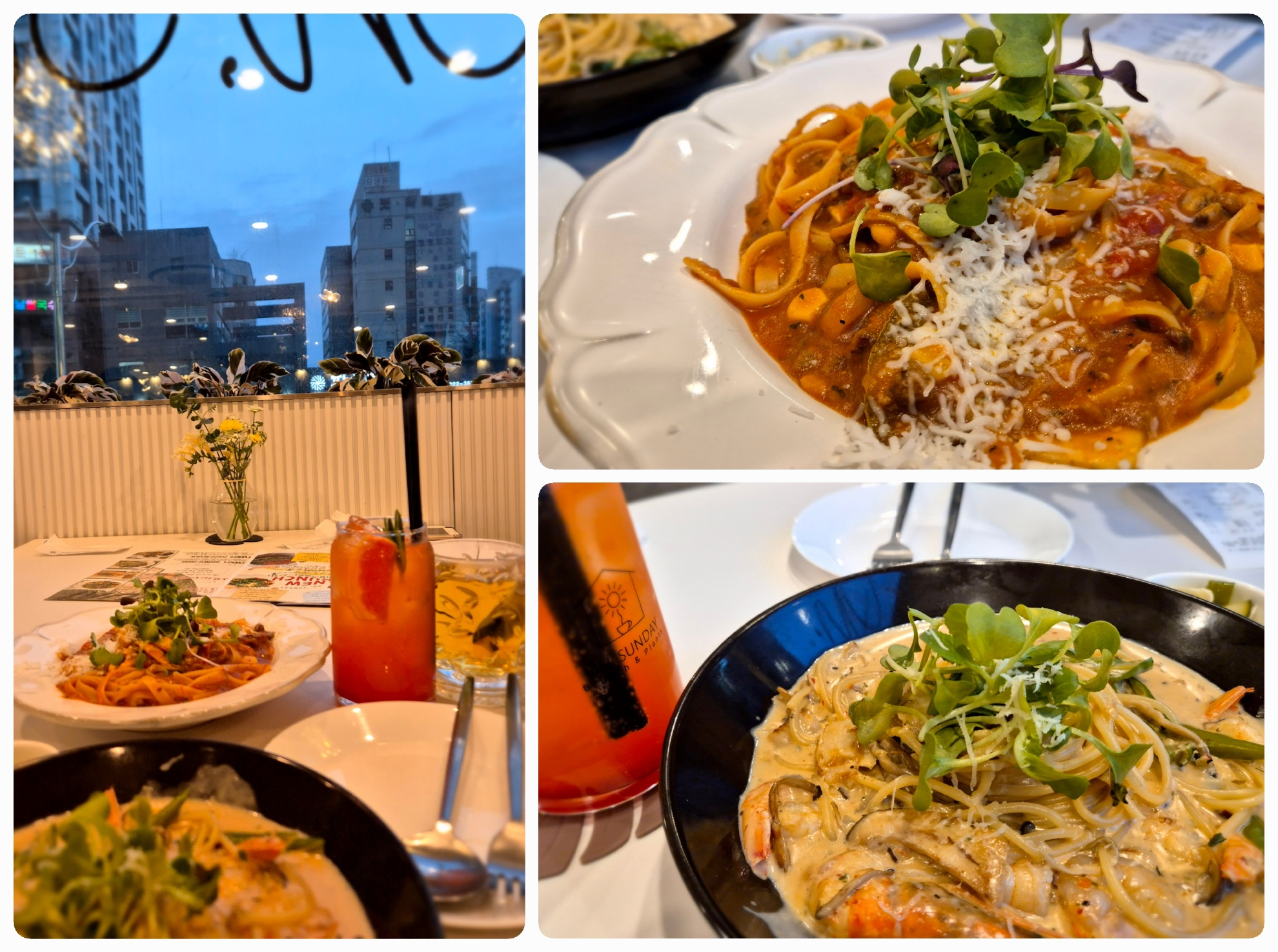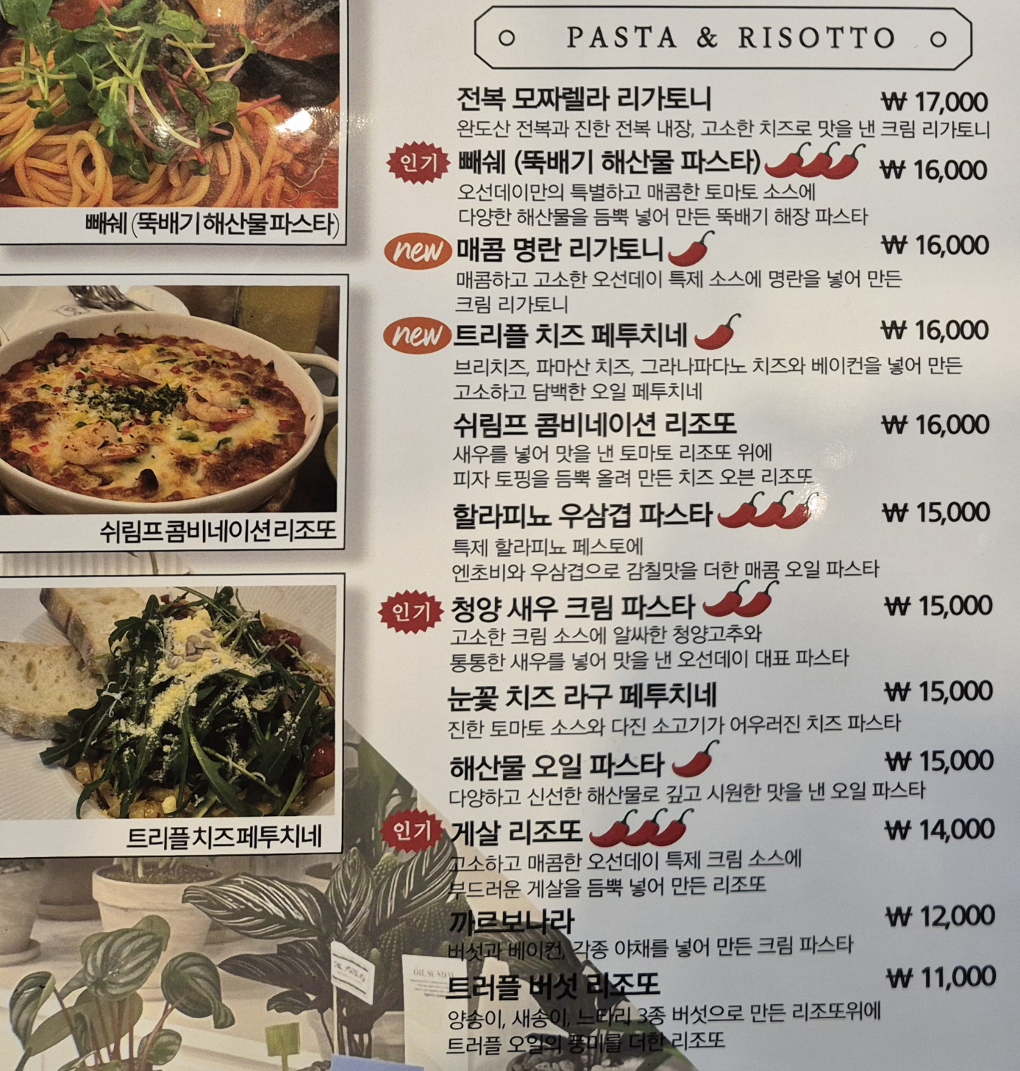 유형 브런치, 파스타, 카페, 카운터 주문 시 결제, 자리로 가져다 줌
