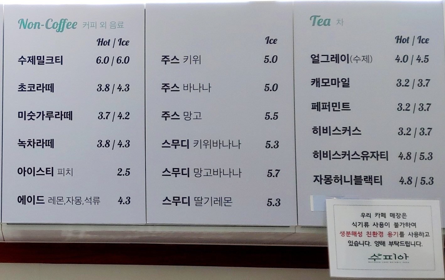 식물원에서 일회용품을 사용하는 것에 대해서 문의가 많았던 것 같다. 생분해성 친환경 용기를 상요하고 있다고 안내가 붙어있다.
