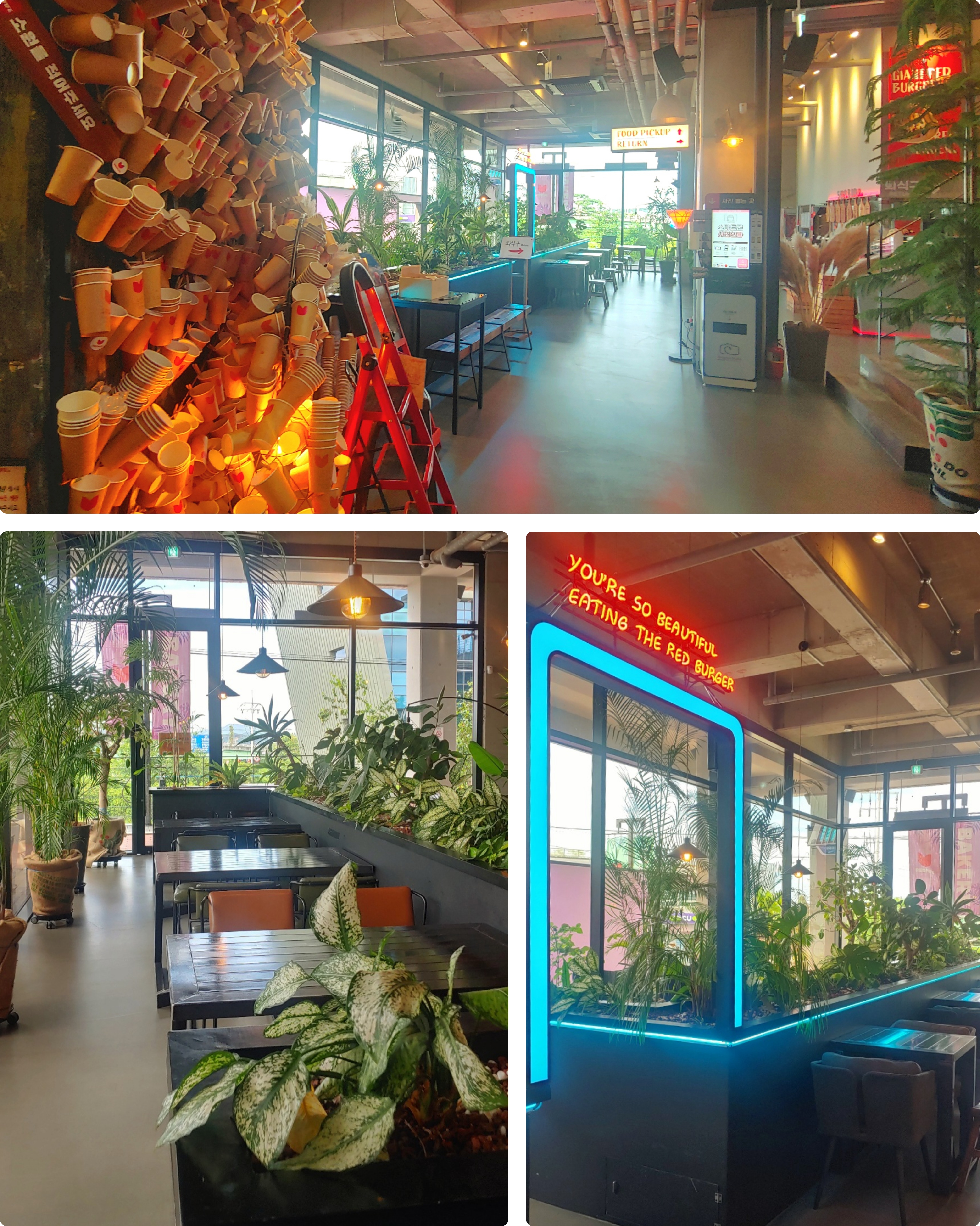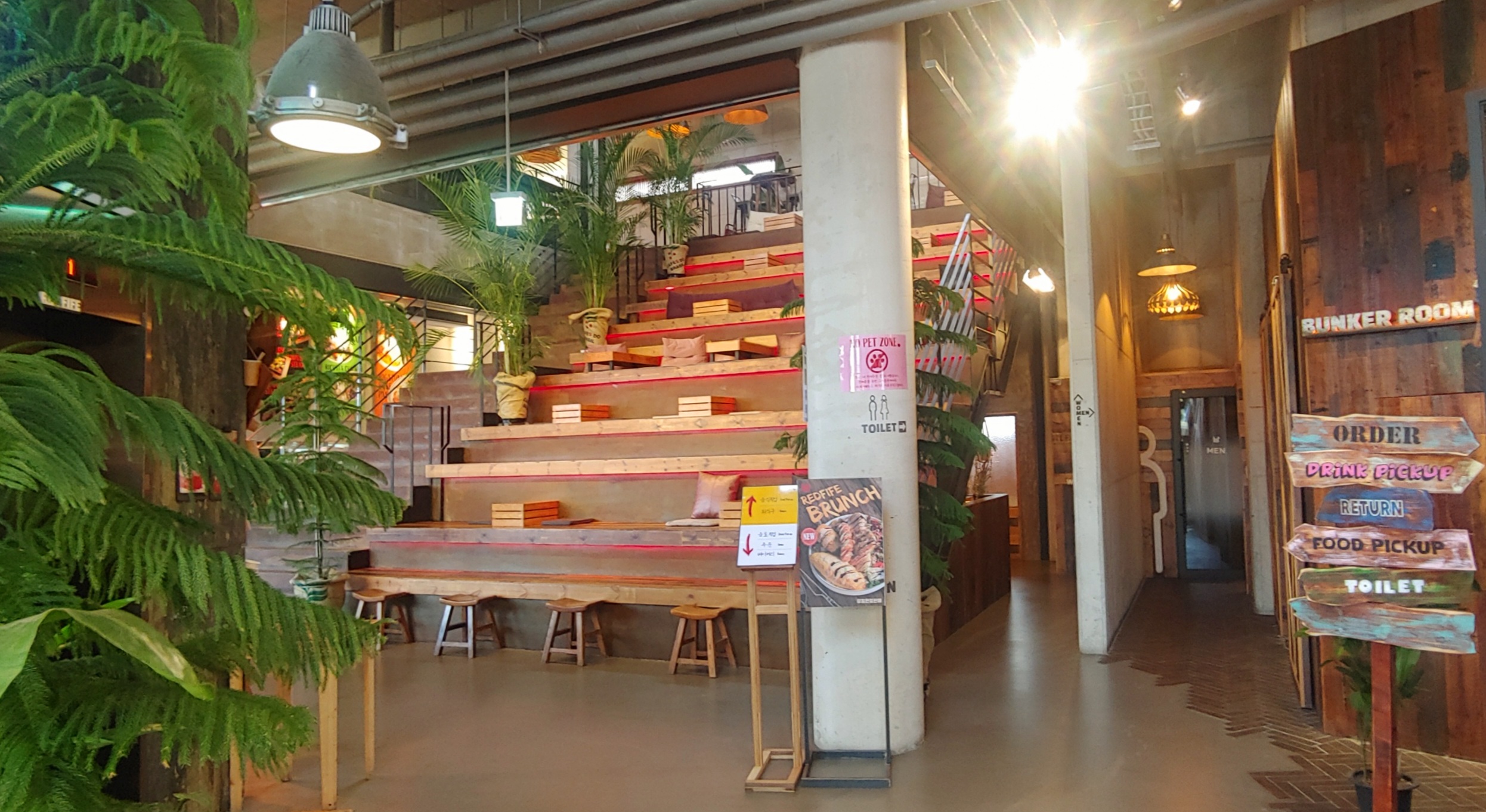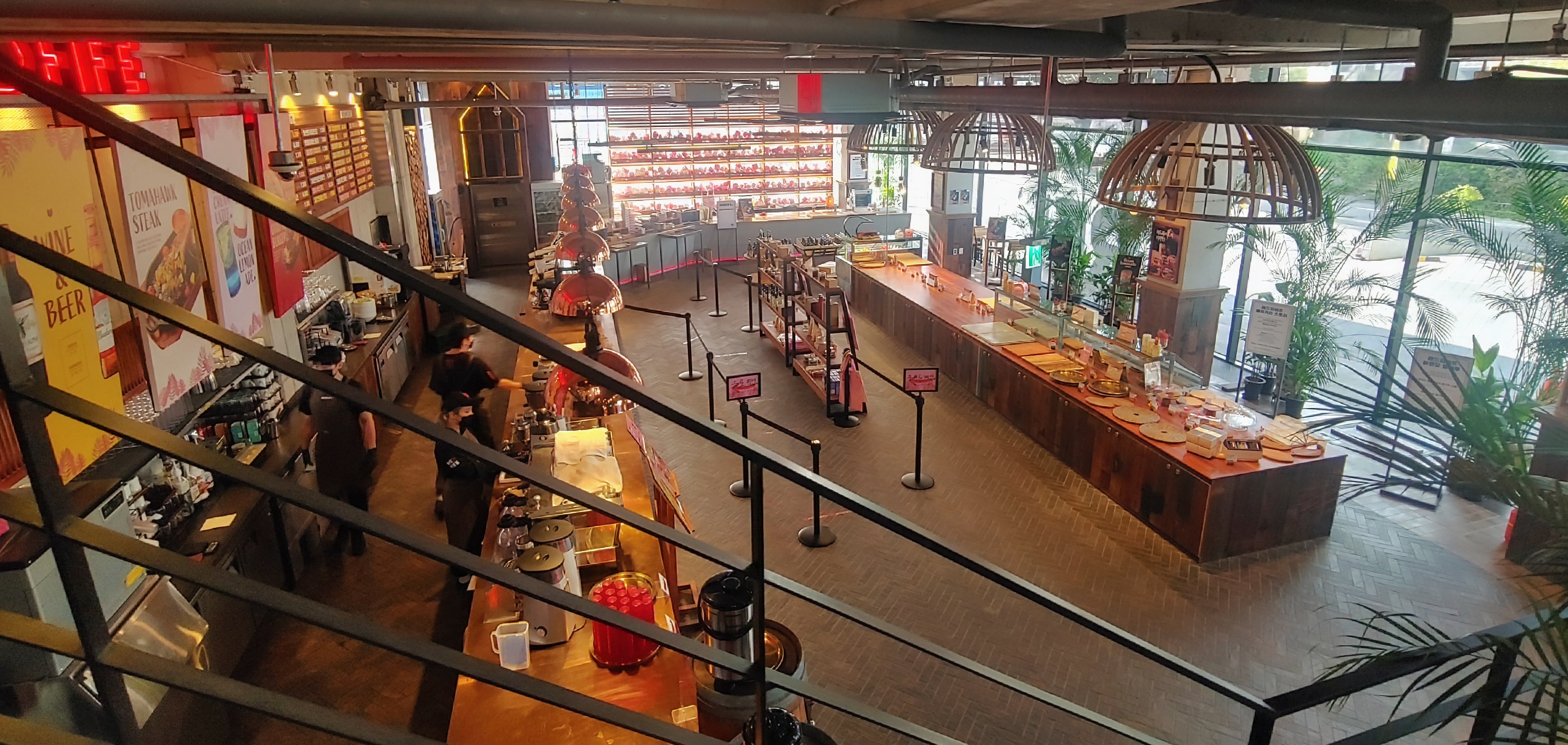 위층으로 올라갈수록 개방감이 더 좋다. 3층과 4층은 2층에 비해서 조용한 편이다. 주문한 메뉴는 1층에서 받아서 가지고 올라가야 한다. 카페 내부에 엘리베이터가 있다. 엘리베이터 안에 트레이를 올려둘 곳이 있다.