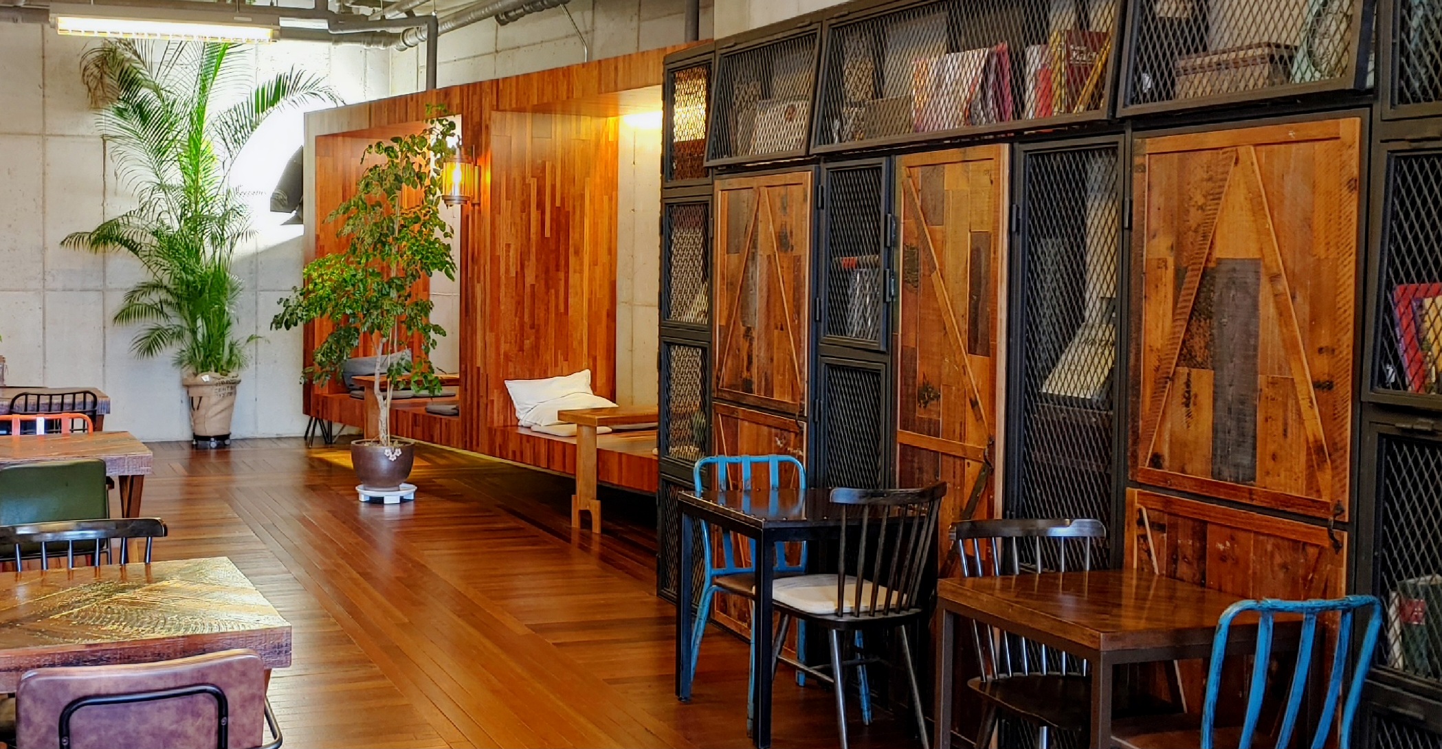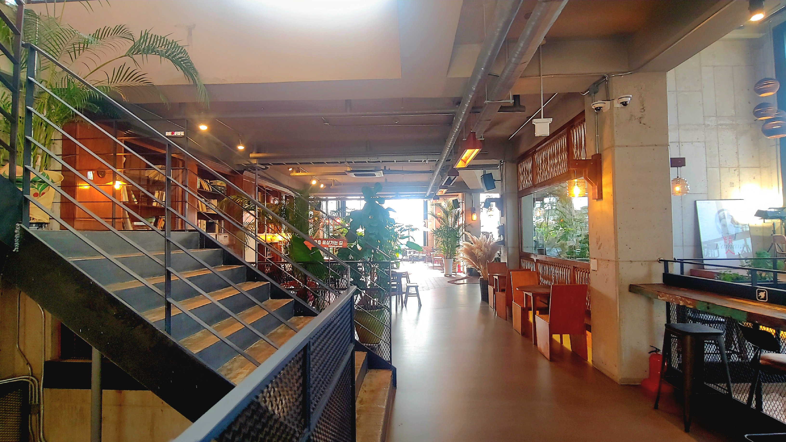 2층에는 여러 가지 다른 카페에서 볼 수 있는 다양한 콘셉트의 공간이 있다. 테이블이 많아서 주차장에 차보다는 좌석이 먼저 찬다.